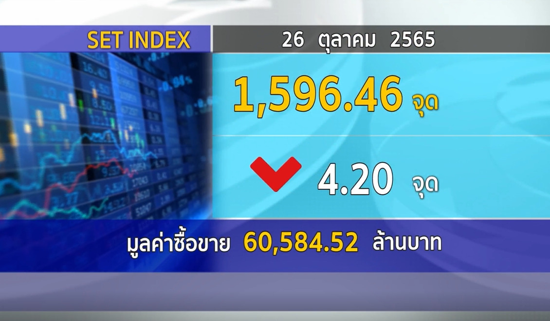 กทม. 26 ต.ค.-ตลาดหลักทรัพย์ ปิดวันนี้ที่ระดับ 1,596.46 จุด ลดลง 4.20 จุด (-0.26%) มูลค่าการซื้อขาย 60,584.52 ล้านบาท