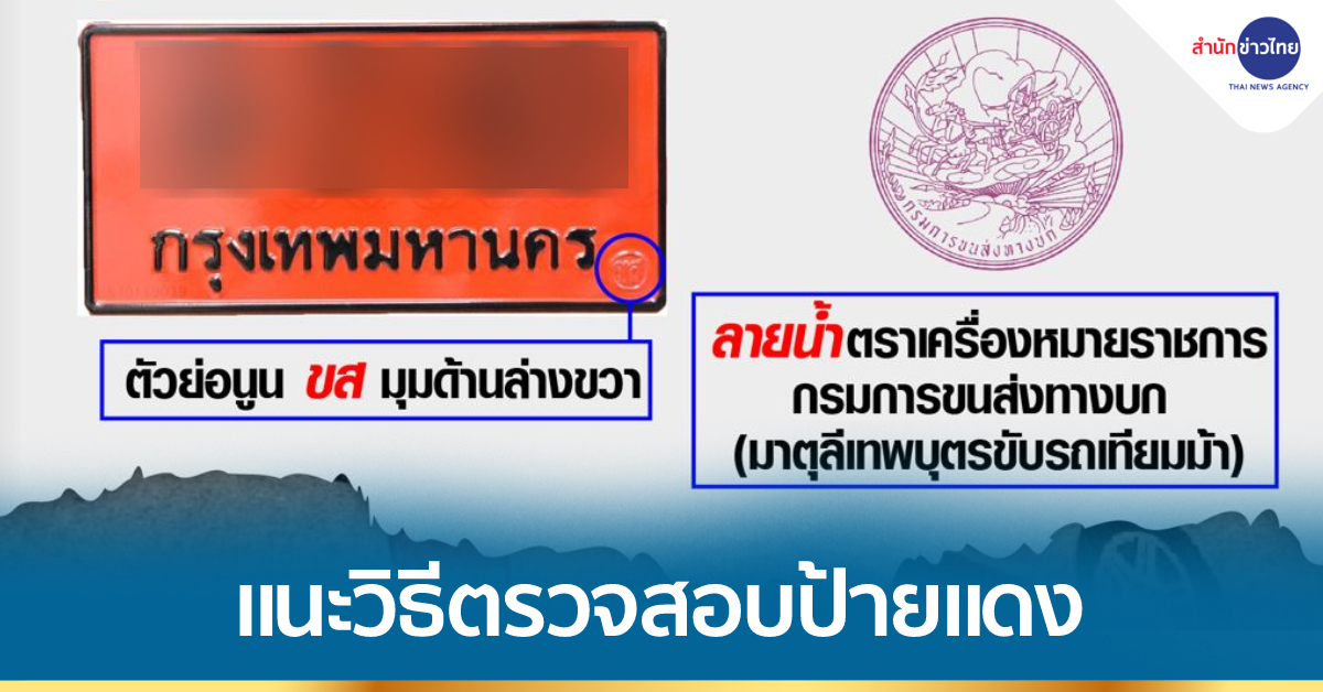 ล่าสุดกรมการขนส่งทางบกออกมาแนะนำการสังเกตป้ายแดง โดยนายเสกสม อัครพันธุ์ รองอธิบดีกรมการขนส่งทางบก และโฆษกกรมการขนส่งทางบก ระบุว่าป้ายแดงที่ออกจากกรมการขนส่งทางบกต้องมีตัวย่อ ขส ซึ่งเป็นตัวนูนที่มุมด้านล่างขวา มีลายน้ำตราเครื่องหมายราชการกรมการขนส่งทางบก ปรากฏในแผ่นป้ายทะเบียนรถ ซึ่งกรมการขนส่งทางบกออกให้แก่บริษัทตัวแทนจำหน่ายรถ สำหรับใช้ติดรถ เพื่อนำรถไปส่งให้ลูกค้า หรือนำรถไปซ่อมแซมเท่านั้น