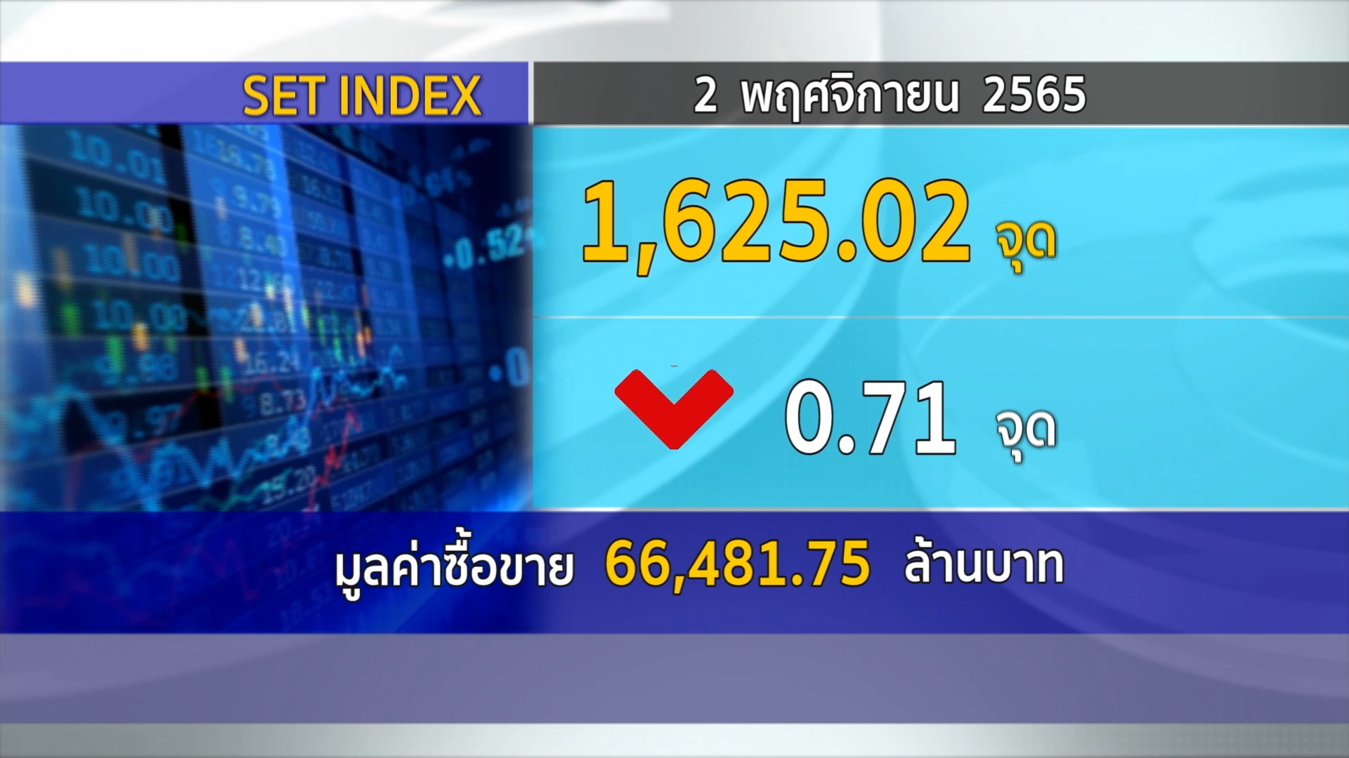 กทม. 2 พ.ย.- ตลาดหลักทรัพย์ ปิดวันนี้ที่ระดับ 1,625.02 จุด ลดลง 0.71 จุด (-0.04%) มูลค่าการซื้อขาย 66,481.75 ล้านบาท