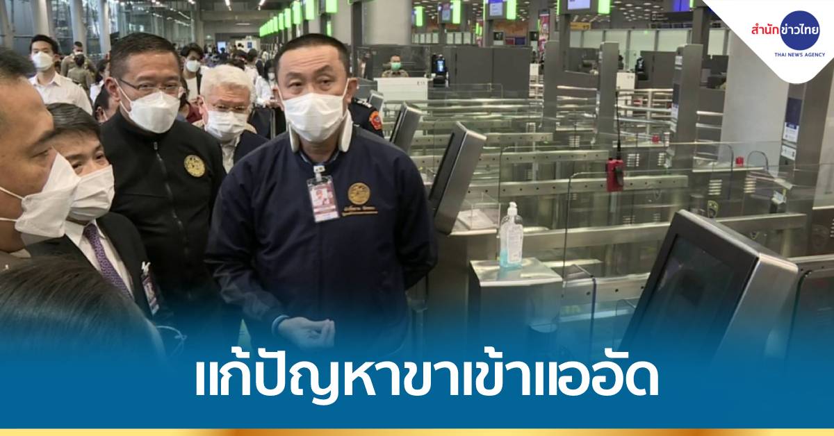 สมุทรปราการ 3 พ.ย.- รมว.คมนาคม ลงพื้นที่วางแนวทางแก้ปัญหาสนามบินสุวรรณภูมิ ซึ่งเกิดความแออัดในพื้นที่ด่าน ตม.ขาเข้า ในบางช่วงเวลา โดยเฉพาะวันหยุด ช่วงที่มีผู้โดยสารจำนวนมาก