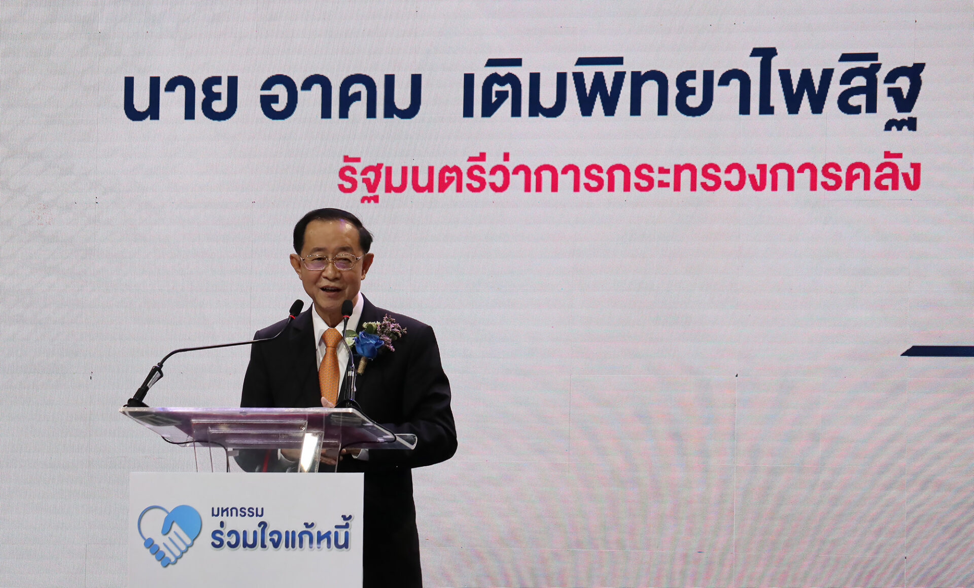 นายอาคม เติมพิทยาไพสิฐ รัฐมนตรีว่าการกระทรวงการคลัง เป็นประธานเปิดงาน “มหกรรมร่วมใจแก้หนี้ มีหนี้ต้องแก้ไข เริ่มต้นใหม่อย่างยั่งยืน” ครั้งที่ 1 นับเป็นความร่วมมือระหว่างกระทรวงการคลัง ธนาคารแห่งประเทศไทย และสมาคมสถาบันการเงินของรัฐ เพื่อแก้ปัญหาหนี้ครัวเรือน รองรับนโยบายของรัฐบาลที่กำหนดให้ปี 2565 เป็นปีแห่งการแก้หนี้ครัวเรือน หลังจากไทยเผชิญกับ โควิด-19 ส่งผลกระทบทำให้ประชาชน และผู้ประกอบธุรกิจขาดรายได้และศักยภาพชำระหนี้ต่ำลง แม้ว่าสถานการณ์การแพร่ระบาดได้คลี่คลายลงแล้ว และเศรษฐกิจเริ่มฟื้นตัวดีขึ้น แต่ปัญหาภาระหนี้ของประชาชนยังคงสูงอยู่