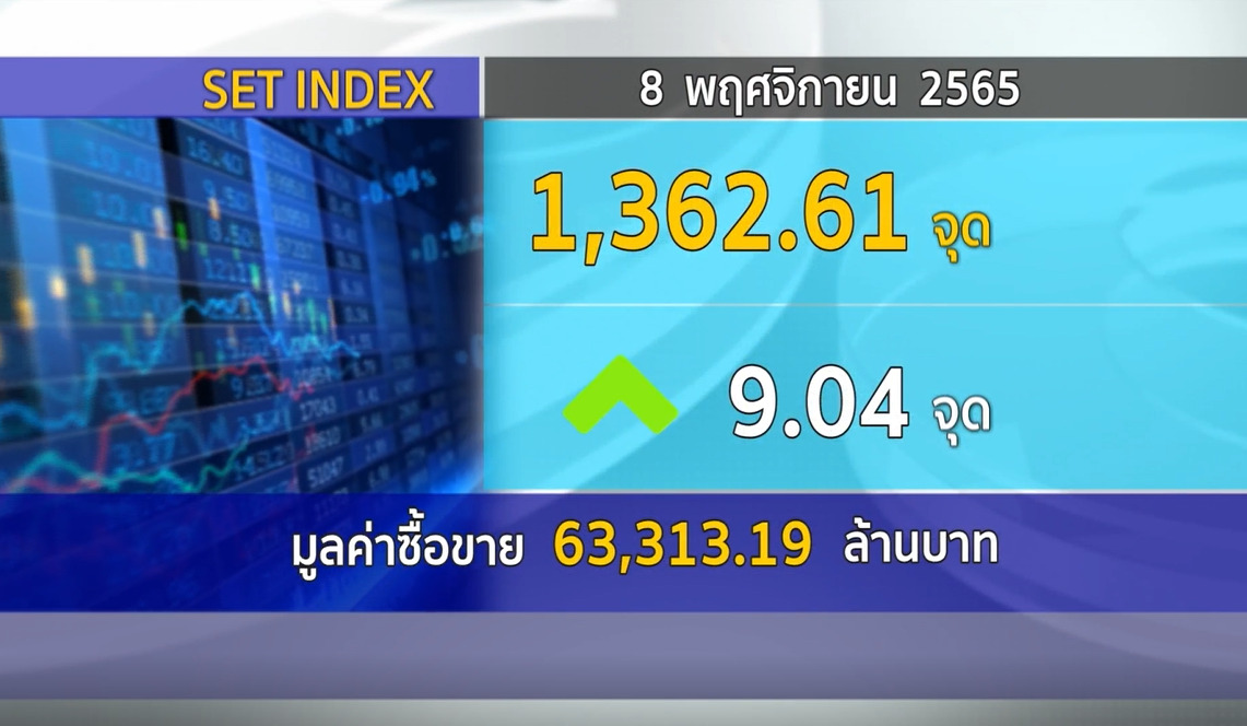 กทม. 8 พ.ย.-ตลาดหลักทรัพย์ ปิดวันนี้ที่ระดับ 1,632.61 จุด เพิ่มขึ้น 9.04 จุด (+0.56%) มูลค่าการซื้อขาย 63,313.19 ล้านบาท