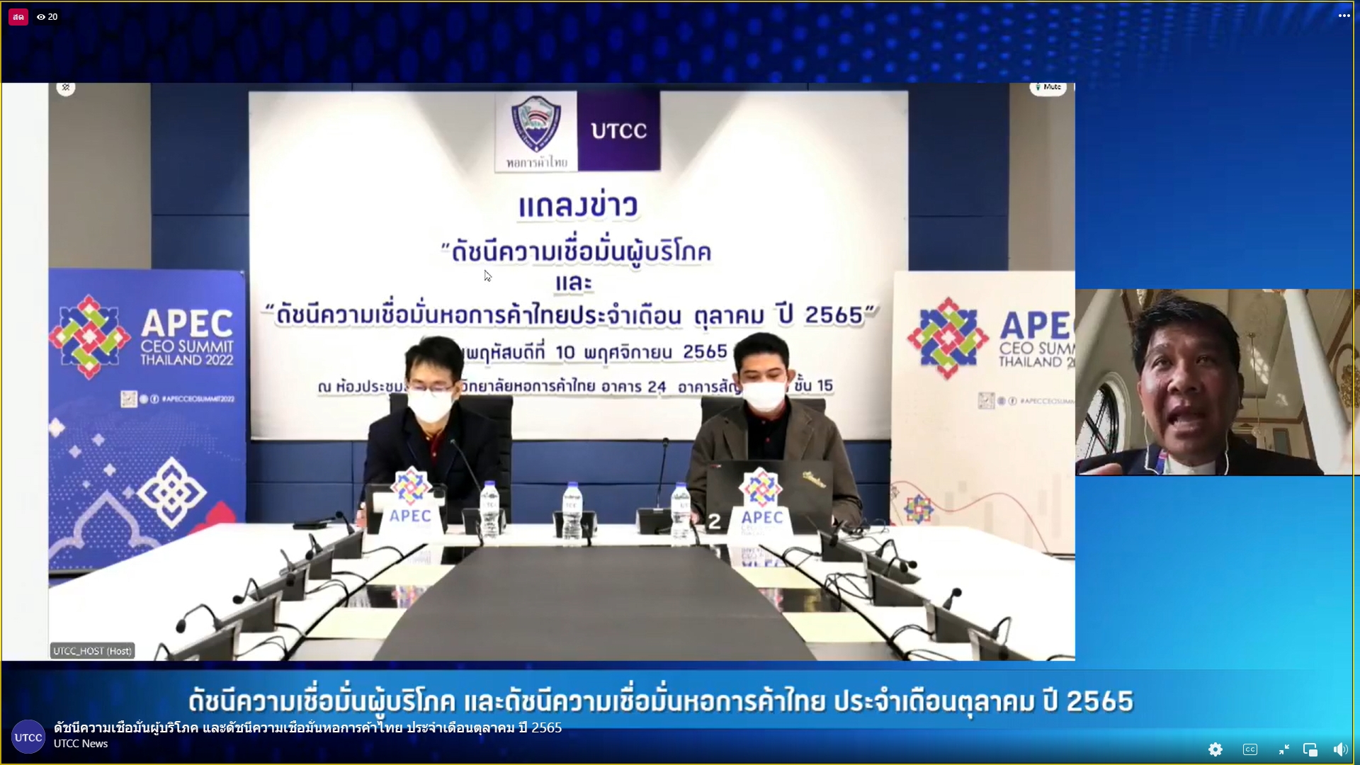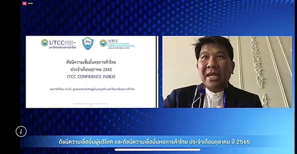 นายธนวรรธน์ พลวิชัย อธิการบดีมหาวิทยาลัยหอการค้าไทยและประธานที่ปรึกษาศูนย์พยากรณ์เศรษฐกิจและธุรกิจ มหาวิทยาลัยหอการค้าไทยกล่าวถึง”ดัชนีความเชื่อมั่นผู้บริโภคประจำเดือนตุลาคม ปี 2565”ว่า ดัชนีความเชื่อมั่นของผู้บริโภคปรับตัวดีขึ้นต่อเนื่องเป็นเดือนที่ 5 และอยู่ในระดับสูงสุดในรอบ 10 เดือนนับตั้งแต่เดือนมกราคม 2565 เป็นต้นมา ซึ่งผู้บริโภครู้สึกว่าเศรษฐกิจเริ่มปรับตัวดีขึ้นหลังจากที่สถานการณ์โควิดในประเทศเริ่มปรับตัวดีขึ้นและมีการผ่อนคลายกฎระเบียบต่างๆ ให้ธุรกิจเริ่มเปิดดำเนินการได้เป็นปกติตลอดจนการผ่อนคลายให้นักท่องเที่ยวต่างชาติเดินทางเข้าประเทศได้สะดวกมากขึ้น ประกอบกับราคาน้ำมันเบนซินปรับตัวลดลงอย่างมากจากช่วงครึ่งปีแรก