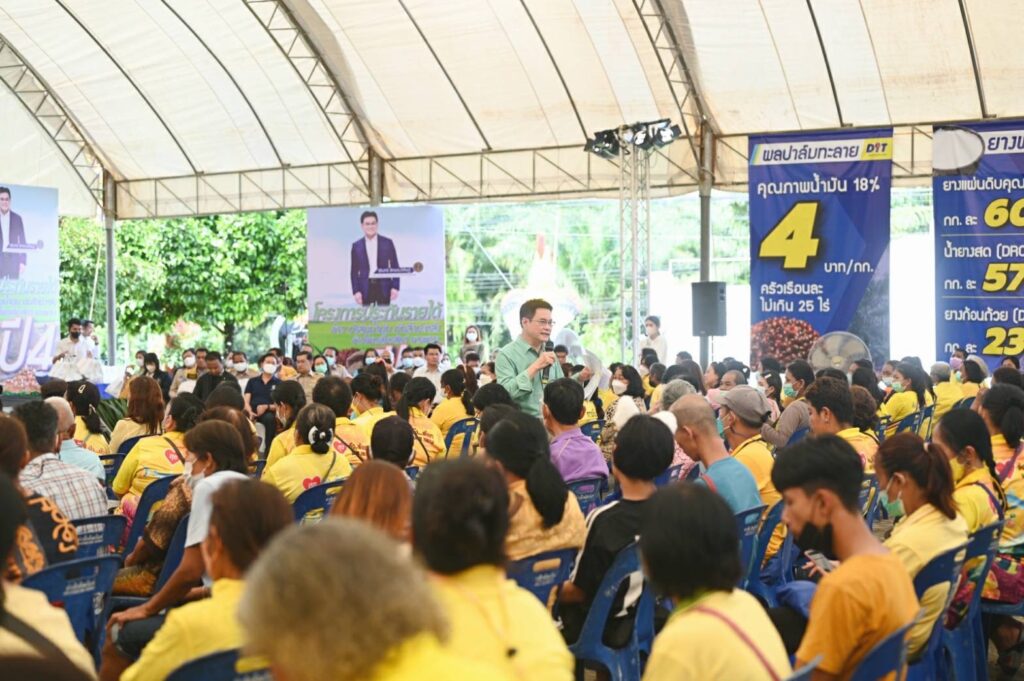 “ชีวิตตนรู้จักหัวใจชาวสวนปาล์มดี พี่น้องไม่ต้องกังวล ไม่ทุ่มกัน ช่วยดูแลให้พี่น้องเสมอ แล้วถ้าวันไหนยางตก ปาล์มตก มีประกันรายได้ ที่เป็นนโยบายประชาธิปัตย์ เพราะเราตั้งใจจะช่วยชาวสวนยาง ชาวสวนปาล์ม วันที่ราคายางราคาปาล์ม ตกรูดมโหฬาร เราจะได้มีประกันรายได้เพื่อเป็นหลักประกันให้พี่น้อง แต่จะต้องพัฒนาคุณภาพสินค้าของตนเองให้มีคุณภาพสูงเพื่อจะได้เป็นที่ต้องการของตลาดโลก”นายจุรินทร์กล่าว