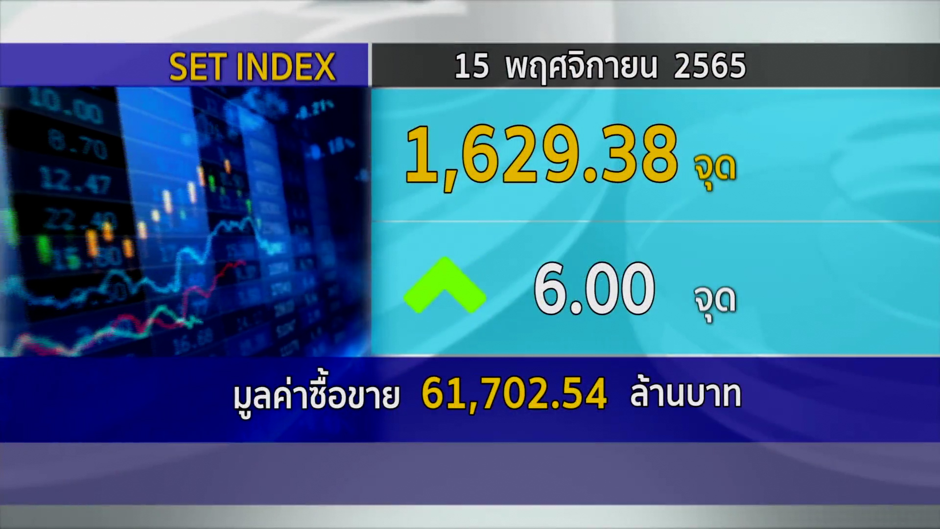 กทม. 15 พ.ย.- ตลาดหุ้นไทย ปิดวันนี้ที่ 1,629.38 จุด เพิ่มขึ้น 6.00 จุด (+0.37%) มูลค่าการซื้อขาย 61,702.54 ล้านบาท