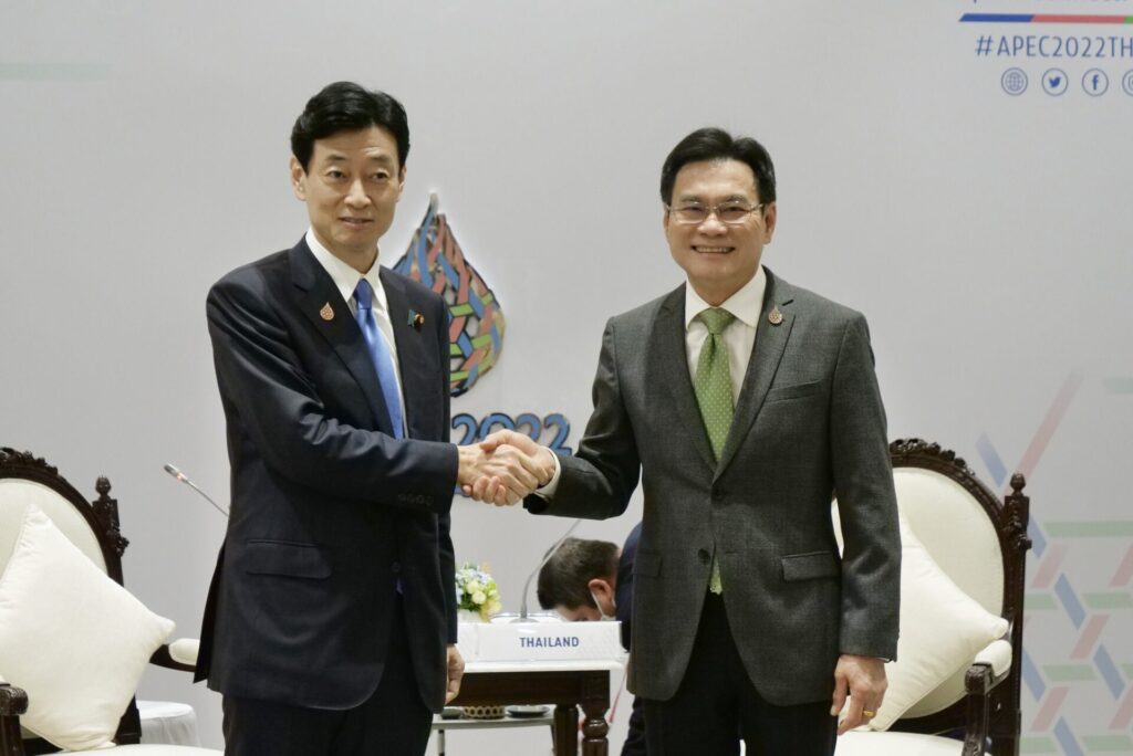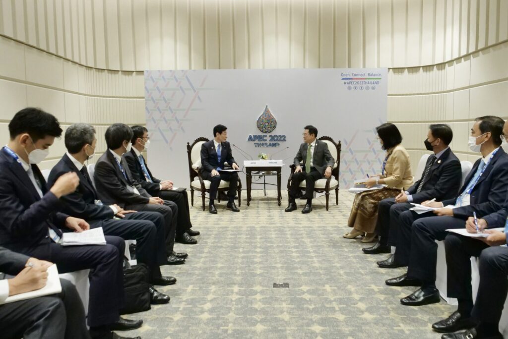 ประเด็นที่สอง ญี่ปุ่นเสนอเร่งรัดการเจรจากลุ่มการค้า RCEP ปัจจุบันมีสมาชิก 15 ประเทศ จับมือสร้างความเข้มแข็งให้กับ RCEP ขณะนี้ไทยเป็นเจ้าภาพการประชุม รับผิดชอบในฐานะประธานรัฐมนตรีเศรษฐกิจ RCEP จนนำไปสู่การให้สัตยาบัน จึงเริ่มต้นได้ในวันนี้ จึงพร้อมตอบรับญี่ปุ่นเร่งรัดขับเคลื่อน RCEP ให้มีความเข้มแข็ง เพราะถือว่าเป็น FTA ที่ใหญ่ที่สุดในโลกในปัจจุบัน ประเด็นที่สาม กรอบความร่วมมือทางเศรษฐกิจอินโด-แปซิฟิกหรือ IPEF (Indo-Pacific Economic Framework)ปัจจุบันสมาชิกมี 14 ประเทศ ญี่ปุ่นจึงขอให้ช่วยกันขับเคลื่อนให้มีการเดินหน้าต่อไป หลังได้เริ่มต้นก่อตั้งกรอบความร่วมมือทางเศรษฐกิจอินโด-แปซิฟิก ตอนประกาศจัดตั้งที่โตเกียวเมื่อเดือนพฤษภาคมปีนี้