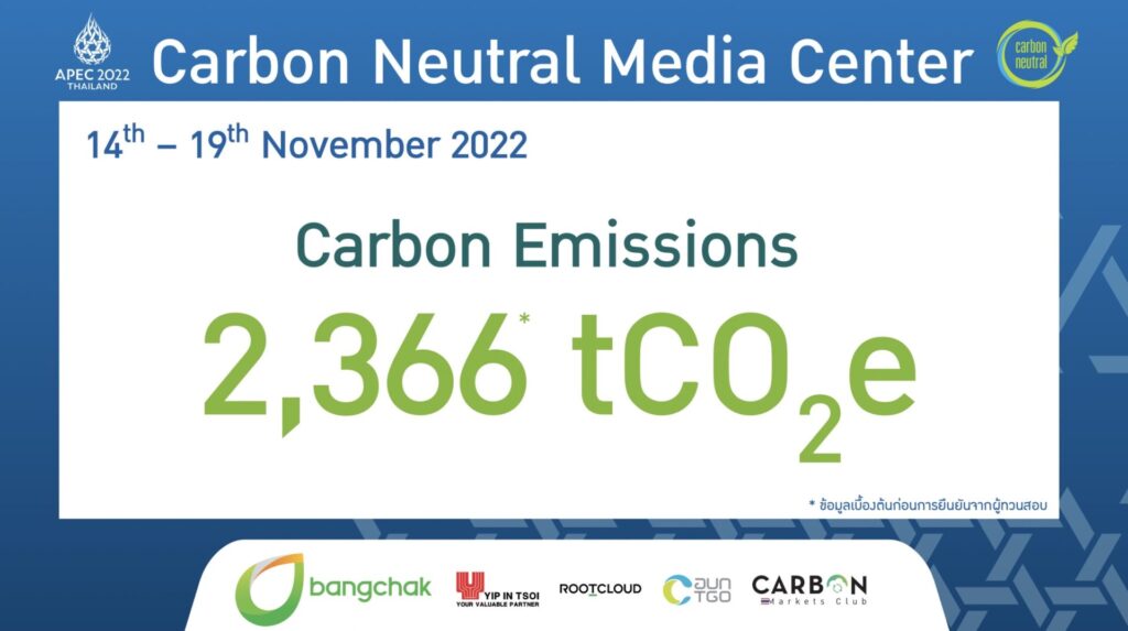 และได้คำนวณและชดเชยการปล่อยคาร์บอนจากศูนย์ปฏิบัติการสื่อมวลชน เพื่อให้เป็น Carbon Neutral Media Center พบว่า ตลอดระยะเวลาการจัดการประชุมทั้ง 6 วัน (14 – 19 พฤศจิกายน 2565) ได้มีการประเมินคาร์บอนฟุตพริ้นท์จากศูนย์ปฎิบัติการสื่อมวลชนรวมประมาณ 2,366 ตันคาร์บอนไดออกไซด์เทียบเท่า (ก่อนการยืนยันจากผู้ทวนสอบ) ซึ่งบางจากฯ จะชดเชยทั้งหมดด้วยคาร์บอนเครดิต (TVERs) จากโครงการของบริษัท บีซีพีจี จำกัด (มหาชน) ผ่านการซื้อขายอย่างเป็นทางการใน Carbon Markets Club ซึ่งปัจจุบันมีสมาชิกกว่า 130 ราย ทั้งประเภทองค์กรและบุคคล เพื่อให้ศูนย์ปฏิบัติการสื่อมวลชนดังกล่าวเป็น Carbon Neutral Media Center (ศูนย์สื่อมวลชนที่มีความเป็นกลางทางคาร์บอนหรือปล่อยคาร์บอนเป็นศูนย์) .-สำนักข่าวไทย