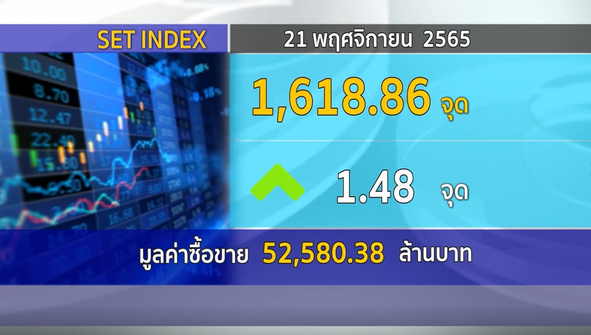 กทม. 21 พ.ย.-ตลาดหลักทรัพย์ ปิดวันนี้ที่ 1,618.86 จุด เพิ่มขึ้น 1.48 จุด (+0.09%) มูลค่าการซื้อขาย 52,580.38 ล้านบาท