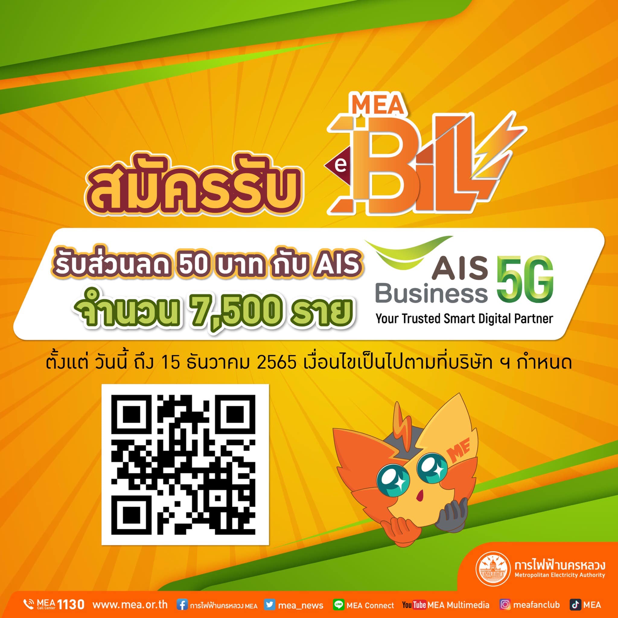 📣 สมัครง่าย ๆ ใช้งานสะดวก รวดเร็ว รับเอกสารออนไลน์ MEA e-Bill วันนี้ 😃 รับส่วนลดทันที 50 บาท กับ AIS