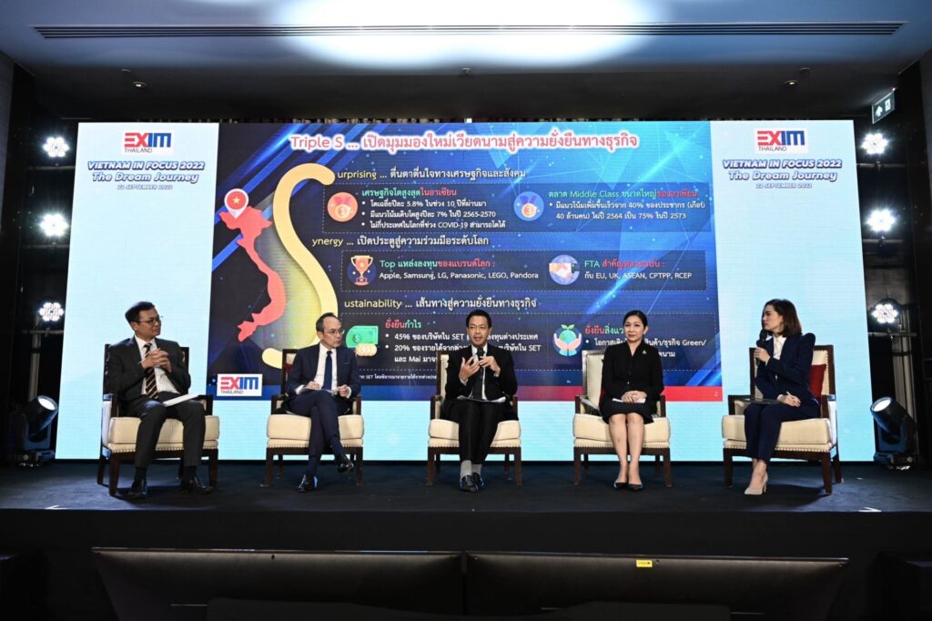 ผู้ประกอบการไทยล้วนเห็นพ้องถึงศักยภาพของตลาดเวียดนาม อย่างไรก็ตาม การเจาะตลาดใหม่ รวมทั้งเวียดนาม ผู้ประกอบการไทยควรมีที่ปรึกษาทางธุรกิจที่พร้อมให้ข้อมูลความรู้ นอกเหนือจากเครื่องมือทางการเงิน ทั้งในมิติของสินเชื่อและบริการประกันการส่งออกและลงทุน และเครือข่ายธุรกิจ โดย EXIM BANK พร้อมทำหน้าที่ดังกล่าว ร่วมกับหน่วยงานภาครัฐและภาคเอกชนที่เกี่ยวข้องทั้งในและต่างประเทศ เพื่อสนับสนุนให้ผู้ประกอบการไทยเข้าไปอยู่ใน Supply Chain ธุรกิจของเวียดนาม โดยเฉพาะธุรกิจที่ขับเคลื่อนเศรษฐกิจชีวภาพ เศรษฐกิจหมุนเวียน และเศรษฐกิจสีเขียว (Bio-Circular-Green Economy) สอดรับกับนโยบายของรัฐบาลเวียดนามที่ส่งเสริมการพัฒนาอุตสาหกรรมพลังงานทดแทนอย่างจริงจัง โดยปัจจุบันโครงการลงทุนของไทยในเวียดนามภายใต้การสนับสนุนของ EXIM BANK คิดเป็นมูลค่ากว่า 17,300 ล้านบาทในหลากหลายธุรกิจ อาทิ โรงไฟฟ้าพลังงานสะอาด และปิโตรเคมี เป็นต้น
