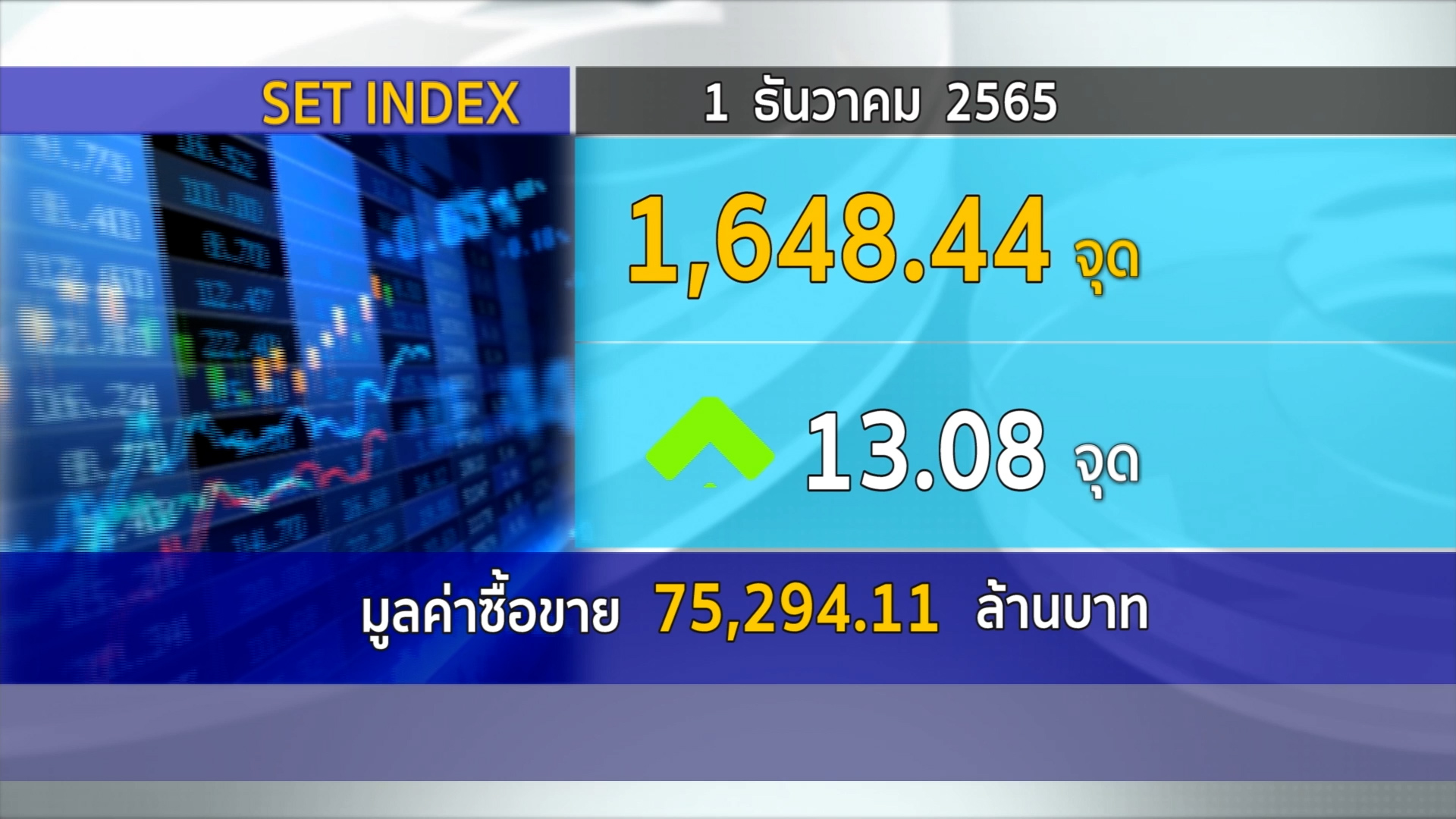 กทม. 1 ธ.ค.- SET ปิดวันนี้ที่ 1,648.44 จุด เพิ่มขึ้น 13.08 จุด (+0.80%) มูลค่าการซื้อขาย 75,294.87 ล้านบาท