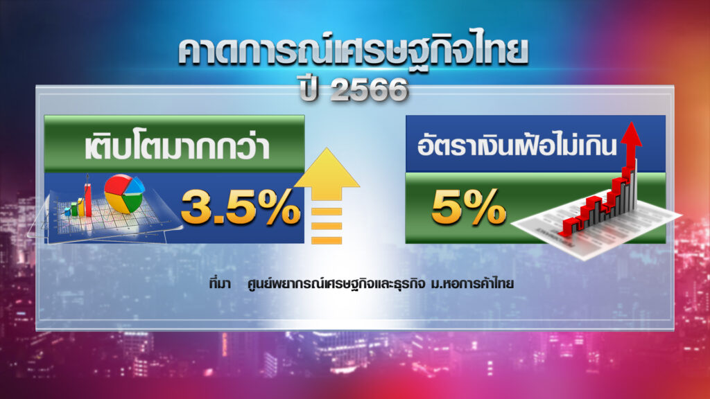 นอกจากนี้ ปัจจัยที่ยังเป็นอุปสรรคต่อเศรษฐกิจไทยในปีหน้า แต่ทางศูนย์พยากรณ์เศรษฐกิจและธุรกิจ มหาวิทยาลัยหอการค้าไทยมองว่า เศรษฐกิจไทยปี 2566 จะยังเติบโตเป็นบวก และมากกว่าร้อยละ 3.5 ขณะที่อัตราเงินเฟ้อของไทยไม่น่าจะเกินกว่าร้อยละ 5 หากสงครามรัสเซียและยูเครนไม่ขยายตัว เชื่อว่าเศรษฐกิจไทยยังเติบโตได้ดีอยู่