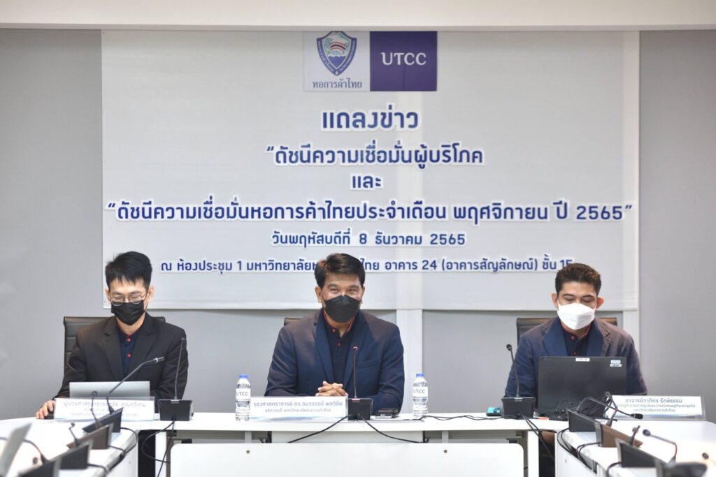 นายธนวรรธน์ พลวิชัย อธิการบดีมหาวิทยาลัยหอการค้าไทย และประธานที่ปรึกษาศูนย์พยากรณ์เศรษฐกิจและธุรกิจเปิดเผยถึงผลสำรวจดัชนีความเชื่อมั่นผู้บริโภคประจำเดือนพฤศจิกายน 2565 พบว่า ดัชนีมีการปรับตัวดีขึ้นต่อเนื่องเป็นเดือนที่ 6 มาอยู่ที่ระดับ 47.9 ทั้งนี้ เป็นผลมาจากสำนักงานสภาพัฒนาการเศรษฐกิจและสังคมแห่งชาติเปิดเผยเศรษฐกิจไทยไตรมาสที่ 3 ขยายตัวร้อยละ 4.5 เมื่อเทียบกับไตรมาสที่ 2 ที่ขยายตัวเพียงร้อยละ 2.5 โดยมีปัจจัยบวกมาจากการผ่อนคลายมาตรการในการควบคุมโควิด 19 รวมถึงนโยบายในการเปิดประเทศรับนักท่องเที่ยว กิจกรรมทางเศรษฐกิจมีการผ่อนคลายมากขึ้น โดยมีการปรับประมาณการการเติบโตของเศรษฐกิจในปีนี้เพิ่มขึ้นมาอยู่ที่ร้อยละ 3.2 ซึ่งเศรษฐกิจที่ขยายตัวมาจากแนวโน้มการบริโภคของภาคเอกชนที่มากขึ้น การลงทุนของภาครัฐและเอกชนรวมถึงเม็ดเงินจากภาคการท่องเที่ยวที่เพิ่มขึ้น ส่วนแนวโน้มเศรษฐกิจไทยในปี 2566 คาดว่าจะขยายตัวอยู่ที่ร้อยละ3-4 จากการฟื้นตัวของภาคการท่องเที่ยวการขยายตัวของการลงทุนและการขยายตัวอย่างต่อเนื่องของการบริโภครวมถึงภาคเกษตรที่ขยายตัวดี