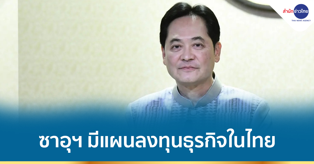 ทำเนียบฯ 9 ธ.ค.-โฆษกรัฐบาลเผย นายกฯ ปลื้มนักลงทุนซาอุดีอาระเบียมีแผนร่วมลงทุนกับไทยในกลุ่มธุรกิจด้านอาหาร ท่องเที่ยว สุขภาพ และในพื้นที่อีอีซี ผลลัพธ์จากนโยบายความสัมพันธ์ และการเตรียมความพร้อมด้านโครงสร้างพื้นฐาน
