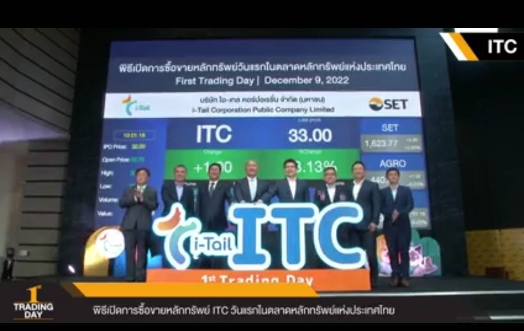 ด้าน บริษัท ไอ-เทล คอร์ปอเรชั่น จำกัด (มหาชน) หรือ ITC เข้าซื้อขายหุ้น (เทรด) วันแรกในตลาดหลักทรัพย์แห่งประเทศไทย (SET) วันนี้ (9 ธ.ค.65) ราคาเปิดที่ 32.75 บาท เพิ่มขึ้น 0.75 บาท หรือ 2.34% จากราคา IPO ที่ 32 บาทต่อหุ้น ITC มีทุนชำระแล้วหลังการเสนอขาย 3,000 ล้านบาท มูลค่าที่ตราไว้หุ้นละ 1 บาท โดยเสนอขายต่อประชาชนทั่วไปเป็นครั้งแรก (IPO) จำนวนรวม 660 ล้านหุ้น ประกอบด้วยหุ้นสามัญเดิมที่ถือโดย TU 60 ล้านหุ้น และหุ้นสามัญเพิ่มทุน 600 ล้านหุ้น ในราคาหุ้นละ 32 บาท คิดเป็นมูลค่าระดมทุน 19,200 ล้านบาท มูลค่าเสนอขายรวม21,120 ล้านบาท เป็น บริษัทผลิตและจำหน่ายอาหารสัตว์เลี้ยงและขนมสำหรับสัตว์เลี้ยงประเภทแมวและสุนัขที่มีรายได้เป็นอันดับ 2 ของเอเชีย และติดอันดับ 1 ใน 10 ของโลก โดย ITC เป็นหนึ่งในผู้นำในการรับจ้างผลิตผลิตภัณฑ์อาหารสัตว์เลี้ยงแบบเปียก และบริษัทแกนนำ (Flagship) ในการประกอบธุรกิจผลิตและจำหน่ายอาหารสัตว์เลี้ยง และผลิตภัณฑ์ที่เกี่ยวเนื่องกับสัตว์เลี้ยงของ บมจ. ไทยยูเนี่ยน กรุ๊ป (TU) ซึ่งเป็นหนึ่งในผู้ผลิตทูน่าแปรรูปที่ใหญ่ที่สุดในโลก .-สำนักข่าวไทย