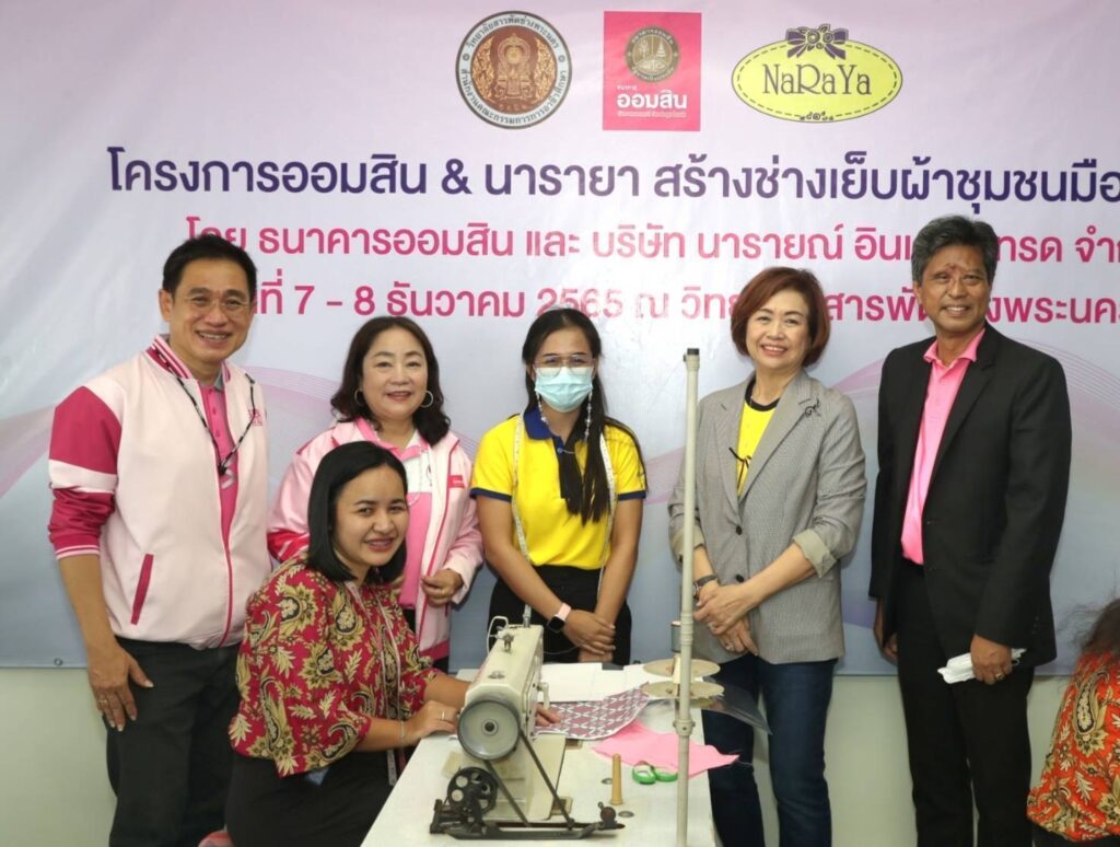 ทั้งนี้ นารายาเป็นผลิตภัณฑ์แบรนด์ไทยมีชื่อเสียงระดับนานาชาติ ที่มีการสอนเทคนิคงานฝีมือเย็บผ้าพร้อมทั้งมอบหมายให้ชาวบ้านเป็นผู้เย็บชิ้นส่วนและประกอบชิ้นงานที่เป็นผลิตภัณฑ์ของแบรนด์ ดังนั้น โครงการผลิตของขวัญปีใหม่ 2566 ของธนาคารออมสินในครั้งนี้ จึงตอบโจทย์ภารกิจเพื่อช่วยเหลือสังคมของทั้ง 2 หน่วยงานที่จะสร้างงานสร้างรายได้แก่คนในท้องถิ่น นอกจากนี้ ทั้ง 2 หน่วยงานยังได้ร่วมกันจัดทำ โครงการสร้างช่างเย็บผ้าชุมชนมืออาชีพ เพื่อขยายผลการสร้างองค์ความรู้ สร้างโอกาสทางอาชีพแก่ชาวบ้านในชุมชน โดยจัดหลักสูตรฝึกอบรมอาชีพช่างเย็บผ้าแก่ตัวแทนชุมชนที่เข้าร่วมโครงการจาก 4 ภูมิภาค ในวันที่ 7 – 8 ธันวาคม 2565 ณ วิทยาลัยสารพัดช่างพระนคร ซึ่งผู้ที่ผ่านการอบรมจะได้รับวุฒิบัตรรับรองการเป็นผู้ผลิตชิ้นงานได้ตามมาตรฐานของนารายา และเป็นโอกาสทางอาชีพในการรับงานจ้างจากนารายาต่อไปในอนาคต อีกทั้งยังสามารถนำองค์ความรู้ไปขยายผลถ่ายทอดให้สมาชิกในกลุ่มองค์กรชุมชนของตนเองได้ต่อไป