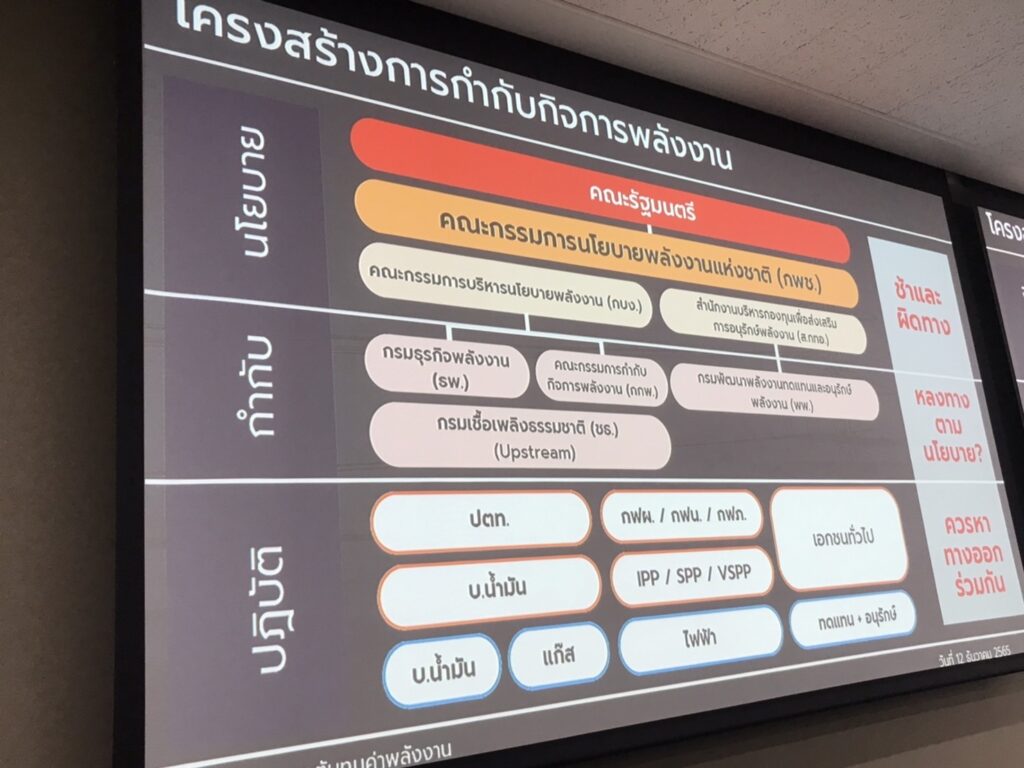นอกจากนี้ จากการคาดการณ์ความต้องการขาย (Demand) สูงเกินไป และการเปิดการซื้อไฟฟ้าจากโรงไฟฟ้าเอกชนมากเกินความจำเป็น จึงก่อให้เกิดความต้องการซื้อ (Supply) ของโรงไฟฟ้ามากกว่าความต้องการขาย (Demand) ถึง 52% ส่งผลให้เป็นภาระต้นทุนของประเทศไทยในระยะยาว และอีกหนึ่งสาเหตุ คือ ประเทศไทยยังขาดกลไกตลาดเสรีของพลังงานและไฟฟ้าที่ยังไม่มี Third Party Access ที่เป็นการเปิดโอกาสให้เอกชนสามารถใช้ระบบส่ง/จำหน่ายไฟฟ้าเพื่อจำหน่ายไฟฟ้าผ่านสายส่ง/จำหน่ายของการไฟฟ้าทั้ง 3 หน่วยงานได้