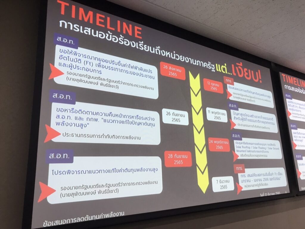 นายอิศเรศ กล่าวอีกว่า ที่ผ่านมา ส.อ.ท. ติดตามถึงสถานการณ์ความผันผวนและราคาพลังงาน รวมถึงการปรับขึ้นค่าไฟฟ้าที่ภาคอุตสาหกรรมได้รับผลกระทบมาโดยตลอด ซึ่งได้มีการทำหนังสือยื่นเสนอข้อร้องเรียนถึงรองนายกรัฐมนตรี และรัฐมนตรีว่าการกระทรวงพลังงาน และประธานกรรมการกำกับกิจการพลังงานไปแล้วตั้งแต่เดือนสิงหาคม- พฤศจิกายน 2565 ทั้งเรื่องแนวทางการแก้ไขต้นทุนพลังงาน การชะลอการปรับขึ้นค่าไฟฟ้าผันแปรอัตโนมัติ (Ft) ปัญหาสูตรโครงสร้างราคาก๊าซธรรมชาติสำหรับผู้ใช้ก๊าซธรรมชาติภาคอุตสาหกรรม แต่ขณะนี้ ยังไม่ได้รับการประสานงานเพื่อหารือแนวทางการแก้ไขปัญหาดังกล่าว