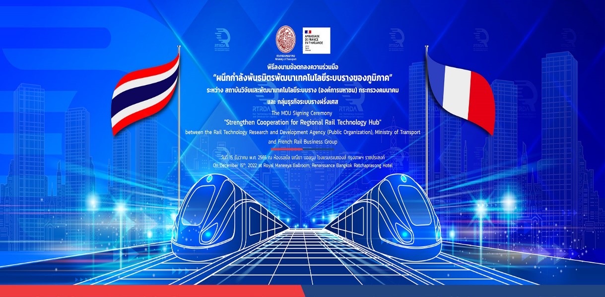 สำหรับการลงนามบันทึกข้อตกลงความร่วมมือในวันนี้ เป็นการต่อยอดความร่วมมือการผนึกกำลังพัฒนาศักยภาพบุคลากร เทคโนโลยี และนวัตกรรม ระหว่างสถาบันวิจัยและพัฒนาเทคโนโลยีระบบราง (องค์การมหาชน) และกลุ่มอุตสาหกรรมระบบรางจากประเทศฝรั่งเศส 5 บริษัท ประกอบด้วย