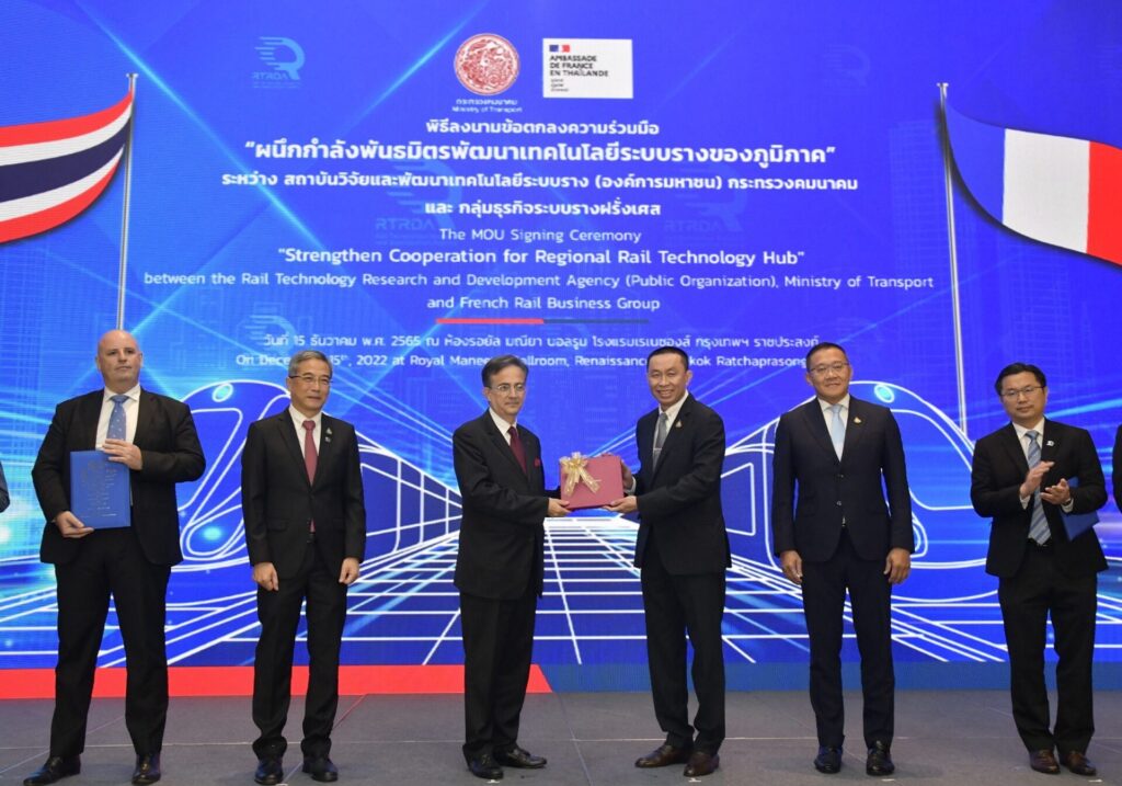 กรุงเทพฯ 15 ธ.ค.- ก.คมนาคม จับมือ 5 บริษัทชั้นนำกลุ่มธุรกิจระบบรางฝรั่งเศส ลงนาม MOU ร่วมพัฒนาเทคโนโลยีระบบรางของไทย พร้อมวางเป้าหมาย ผู้นำระบบรางในภูมิภาคอาเซียน