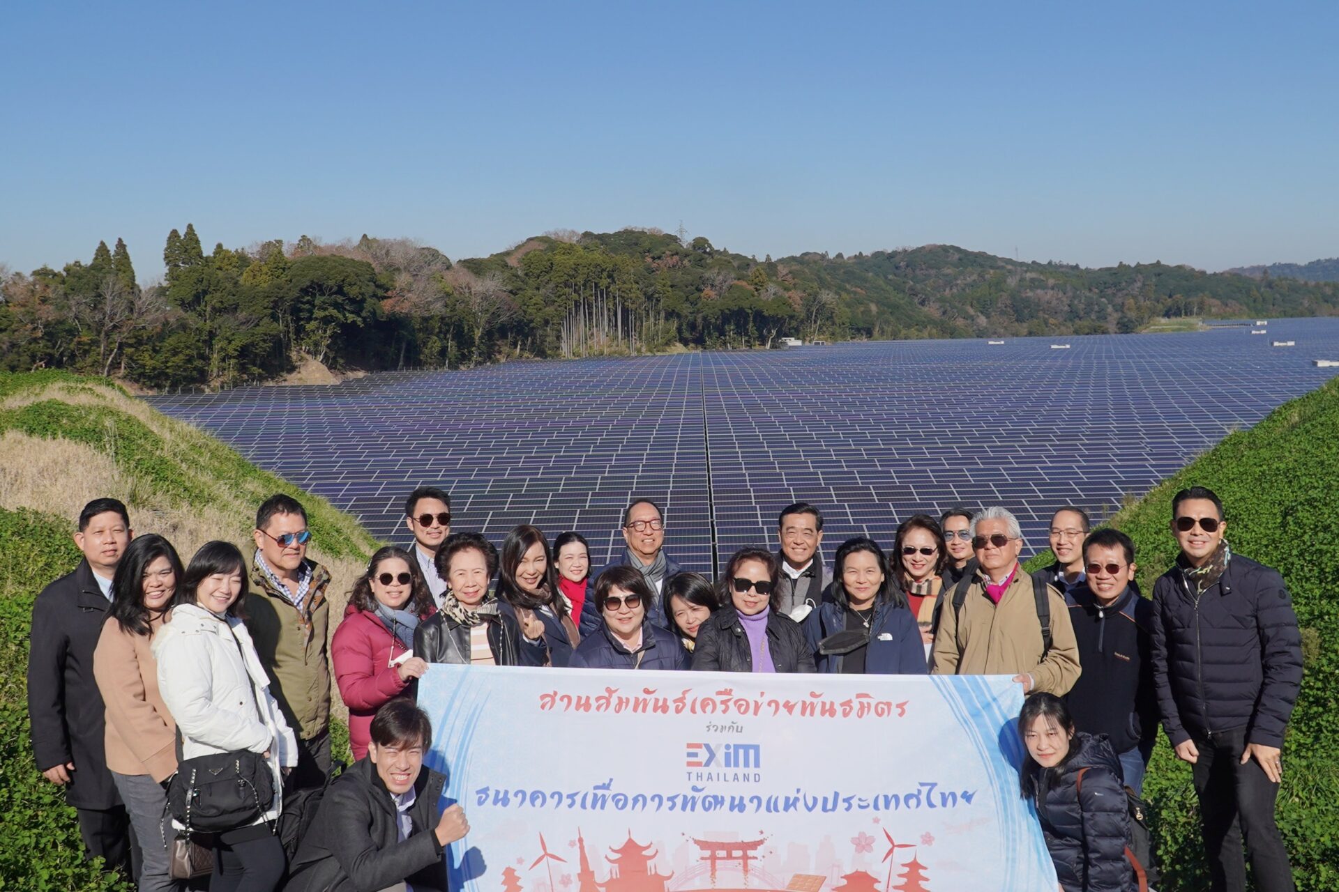 เมื่อเร็ว ๆ นี้ EXIM BANK นำโดย ดร.พสุ โลหารชุน ประธานกรรมการ EXIM BANK พร้อมด้วยกรรมการ EXIM BANK และ ดร.รักษ์ วรกิจโภคาทร กรรมการผู้จัดการ EXIM BANK นายปิยะบุตร ชลวิจารณ์ ประธานคณะอนุกรรมการประเมินผลการดำเนินงานรัฐวิสาหกิจ สาขาสถาบันการเงิน (SubPAC) ผู้บริหารสำนักงานเศรษฐกิจการคลัง (สศค.) สำนักงานคณะกรรมการนโยบายรัฐวิสาหกิจ (สคร.) และมูลนิธิสถาบันวิจัยและพัฒนาองค์กรภาครัฐ (Institute of Research and Development for Public Enterprises : IRDP) ซึ่งเป็นหน่วยงานที่สนับสนุนภารกิจ EXIM BANK ในการส่งเสริมการค้าและการลงทุนระหว่างประเทศ ได้ไปเยี่ยมชมโครงการโรงไฟฟ้าพลังงานแสงอาทิตย์ของบริษัท บีซีพีจี จำกัด (มหาชน) (BCPG) ในกลุ่มบางจาก คอร์ปอเรชั่น กำลังการผลิตตามสัญญา 20 MW ในจังหวัดชิบะ ประเทศญี่ปุ่น โดยมีนางเสาวภาพ สุเมฆศรี รองกรรมการผู้จัดการใหญ่ สายงานการเงินและบัญชี บริษัท บีซีพีจี จำกัด (มหาชน) (BCPG) ให้การต้อนรับและนำชมโครงการ