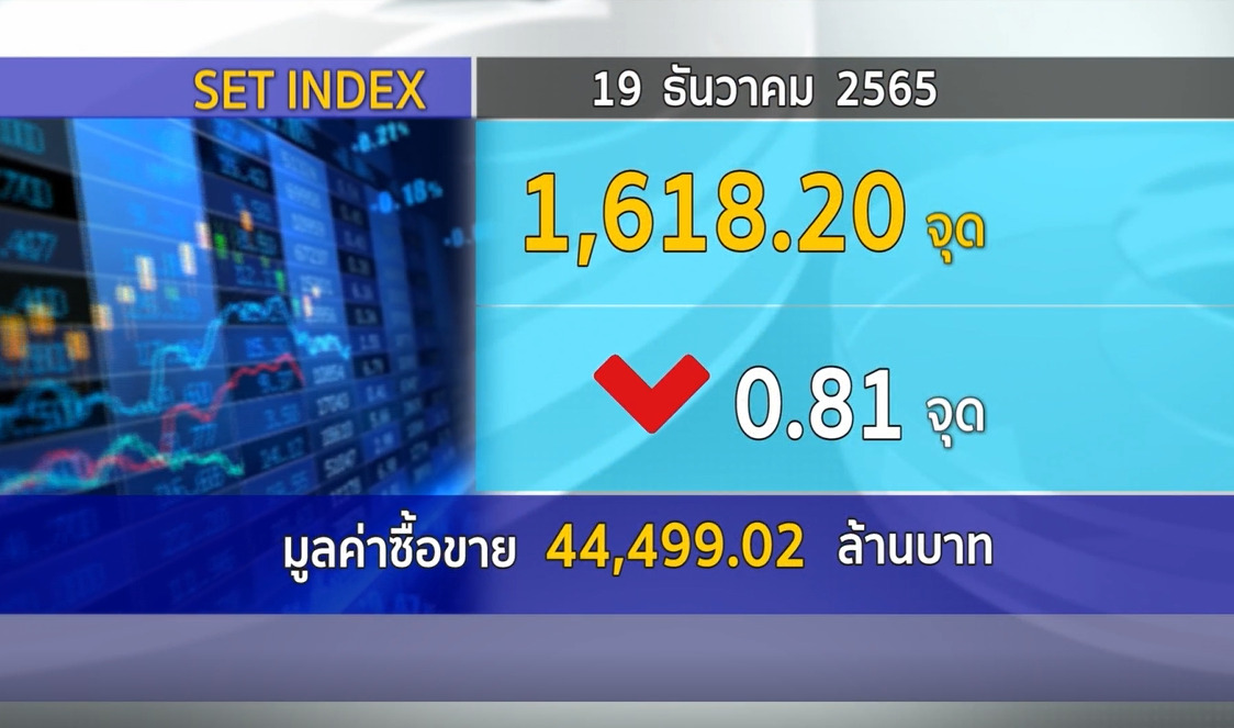กทม. 19 ธ.ค.-ตลาดหลักทรัพย์ ปิดวันนี้ที่ 1,618.20 จุด ลดลง 0.81 จุด (-0.05%) มูลค่าการซื้อขายราว 44,499.02 ล้านบาท