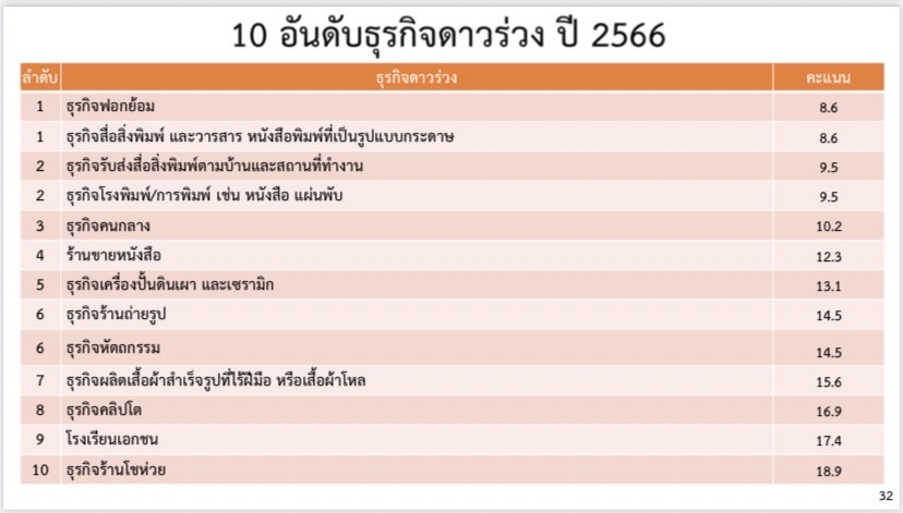 ขณะที่ 10 อันดับธุรกิจดาวร่วง ปี 2566