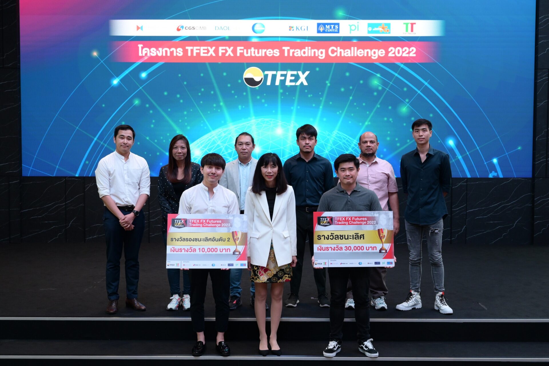 นางสาวรินใจ ชาครพิพัฒน์ กรรมการผู้จัดการ บมจ. ตลาดสัญญาซื้อขายล่วงหน้า (ประเทศไทย) มอบรางวัลโครงการTFEX FX Futures Trading Challenge 2022 ซึ่ง TFEX ได้ร่วมกับบริษัทสมาชิก และบริษัท ท๊อปเทรดเดอร์ จำกัดจัดโครงการดังกล่าวขึ้นเพื่อส่งเสริมความรู้ผู้ลงทุนในสินค้า FX Futures ได้แก่ EUR/USD Futures, USD/JPY Futures และ USD Futures ผ่านการอบรมและเวิร์กช็อปเข้มข้น พร้อมสร้างประสบการณ์เทรดผ่านการแข่งขันด้วยพอร์ตจำลอง มีผู้สนใจสมัครเข้าร่วมโครงการ 1,352 คน โดยผู้ชนะเลิศสามารถสร้างอัตราผลตอบแทนได้ถึง 355% สำหรับรองชนะเลิศอันดับ 1 และอันดับ 2 สร้างผลตอบแทนได้ 350% และ 320% ตามลำดับ ติดตามผลการแข่งขันหรือชมสัมมนาย้อนหลังได้ที่ www.TFEX.co.th.-สำนักข่าวไทย
