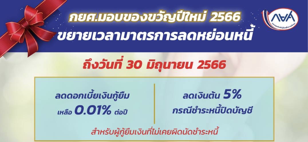 2. ลดเงินต้นร้อยละ 5 สำหรับผู้กู้ยืมเงินที่ไม่เคยเป็นผู้ผิดนัดชำระหนี้และต้องการปิดบัญชีในคราวเดียว