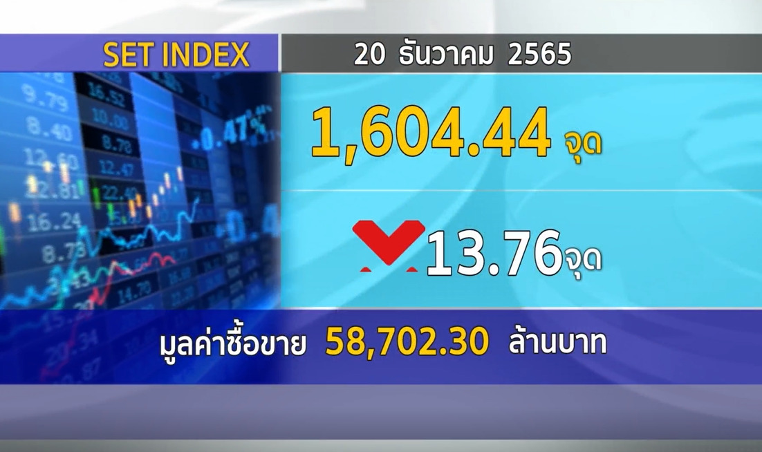 กทม. 20 ธ.ค.-ตลาดหลักทรัพย์ ปิดวันนี้ที่ 1,604.44 จุด ลดลง 13.76 จุด (-0.85%) มูลค่าการซื้อขาย 58,700.96 ล้านบาท