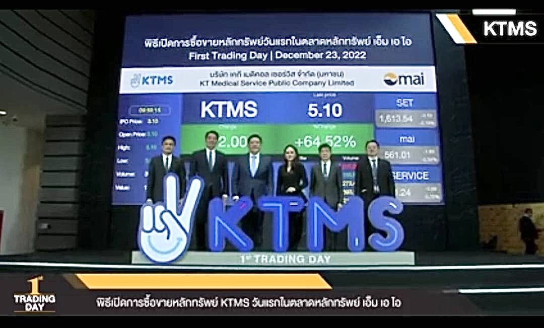 KTMS เข้าจดทะเบียนในตลาดหลักทรัพย์ เอ็ม เอ ไอ ราคา IPO 3.10 บาท (PE Ratio 37.29 เท่า) จำนวนหุ้น IPO 76.6 ล้านหุ้น คิดเป็นมูลค่าระดมทุนราว 237 ลบ. มีวัตถุประสงค์เพื่อ 1) ลงทุนในสถานพยาบาลฟอกเลือดด้วยเครื่องไตเทียม 2) ลงทุนในโรงงานผลิตน้ำยาไตเทียมและศูนย์บริการวิศวกรรม และ 3) ใช้เป็นเงินทุนหมุนเวียนในกิจการ