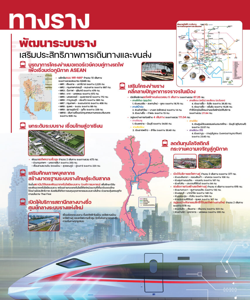 นายศักดิ์สยาม ชิดชอบ รัฐมนตรีว่าการกระทรวงคมนาคม เปิดเผยภายหลังเป็นประธานสัมมนาเชิงปฏิบัติการ สรุปผลงานปี 2565 และขับเคลื่อนนโยบายไปสู่การปฏิบัติในปี 2566 และปี 2567 ว่า การพัฒนาโครงสร้างพื้นฐานด้านการคมนาคมขนส่ง เพื่อส่งเสริมเศรษฐกิจ รวมถึงการให้บริการประชาชนอย่างทั่วถึงทั่วประเทศ เพื่อสนับสนุนให้ไทยเป็นศูนย์กลางการลงทุนของภูมิภาคอาเซียน จึงได้มอบนโยบายให้หน่วยงานในสังกัดกระทรวงฯ เร่งรัดการดำเนินงานตามภารกิจสำคัญ