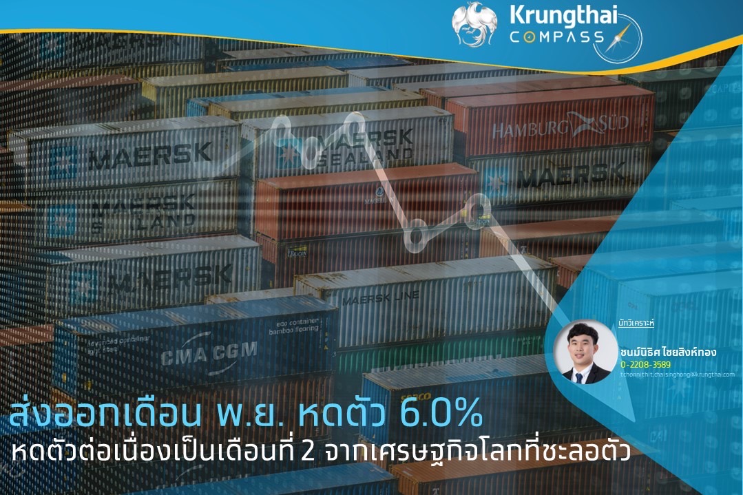 กรุงเทพฯ 28 ธ.ค.-Krungthai COMPASS วิเคราะห์ “ส่งออกเดือน พ.ย. หดตัว 6.0% หดตัวต่อเนื่องเป็นเดือนที่ 2 จากเศรษฐกิจโลกที่ชะลอตัว ”