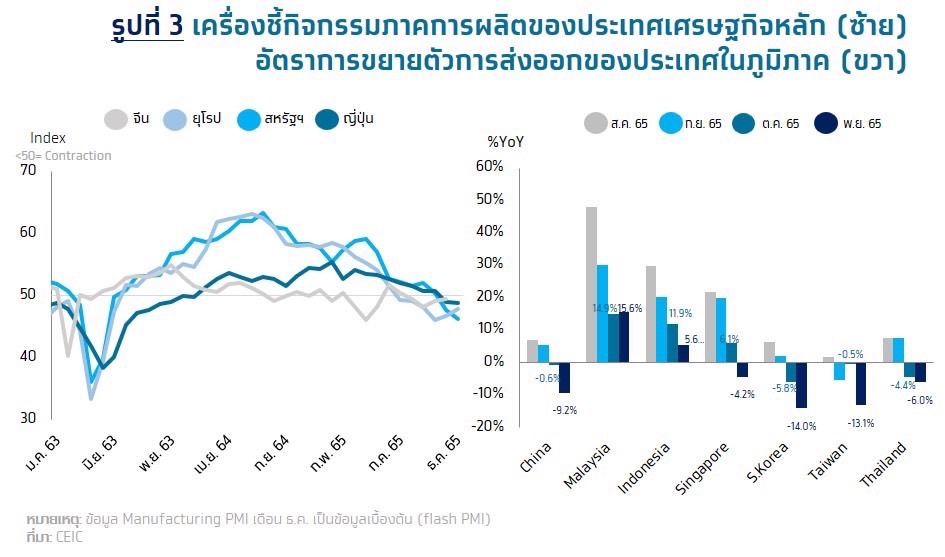 ทั้งนี้ อุปสงค์ประเทศคู่ค้าสำคัญ เช่น ญี่ปุ่น จีน อาเซียน-5 และ CLMV ดังนั้น Krungthai COMPASS ประเมินผู้ส่งออกไทยต้องเผชิญความเสี่ยงจากอุปสงค์โลกที่ชะลอตัวชัดเจน โดยการส่งออกมีแนวโน้มที่จะชะลอตัวในปี 2566 จากเศรษฐกิจโลกที่แผ่วลง โดยเฉพาะเศรษฐกิจของประเทศหลักอย่าง สหรัฐฯ และยุโรป ที่อยู่ในภาวะชะลอตัวประกอบกับอุปสงค์ต่อสินค้าเพื่ออุปโภคบริโภคของโลกมีแนวโน้มแผ่วลงตามความต้องการสินค้าเปลี่ยนไปสู่การบริการมากขึ้น และออเดอร์คงค้าง (backlog order) ทยอยคลี่คลายเป็นต้น.-สำนักข่าวไทย