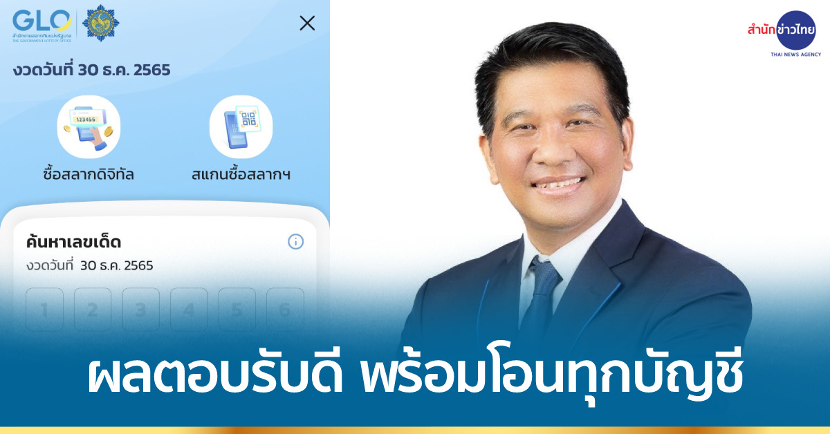 กรุงเทพฯ 29 ธ.ค. – สำนักงานสลากฯ แจง สลากดิจิทัลผ่านแอปเป๋าตัง ผลตอบรับดี งวด 17 ม.ค. 66 เพิ่มเป็น 17.129 ล้านฉบับ พร้อมโอนเงินรางวัลเข้าทุกบัญชี ภายใน 2 ชั่วโมง ย้ำตัวแทนจำหน่ายผู้ซื้อ-จองล่วงหน้า ต้องปฏิบัติตามสัญญาและเงื่อนไขการจำหน่ายเคร่งครัด ห้ามขายเกินราคาหรือขายส่ง ปีที่ผ่านมายกเลิกโควตาแล้วกว่า 23,000 ราย