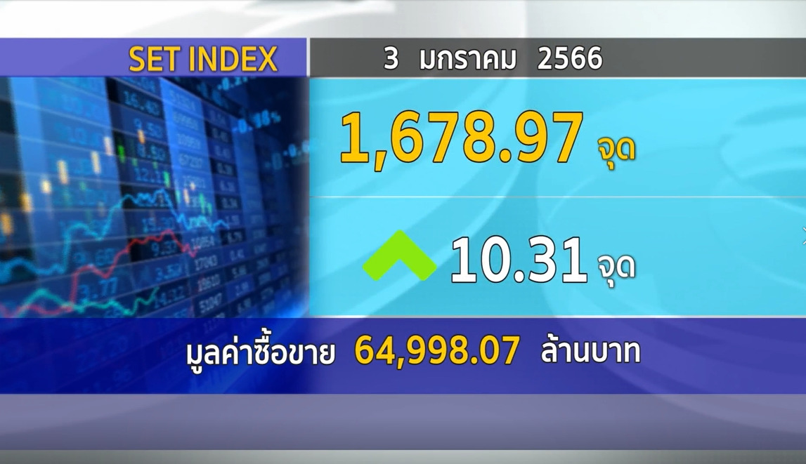 กทม. 3 ม.ค.-SET ปิดวันนี้ที่ 1,678.97 จุด เพิ่มขึ้น 10.31 จุด (+0.62%) มูลค่าการซื้อขาย 65,002.71 ล้านบาท