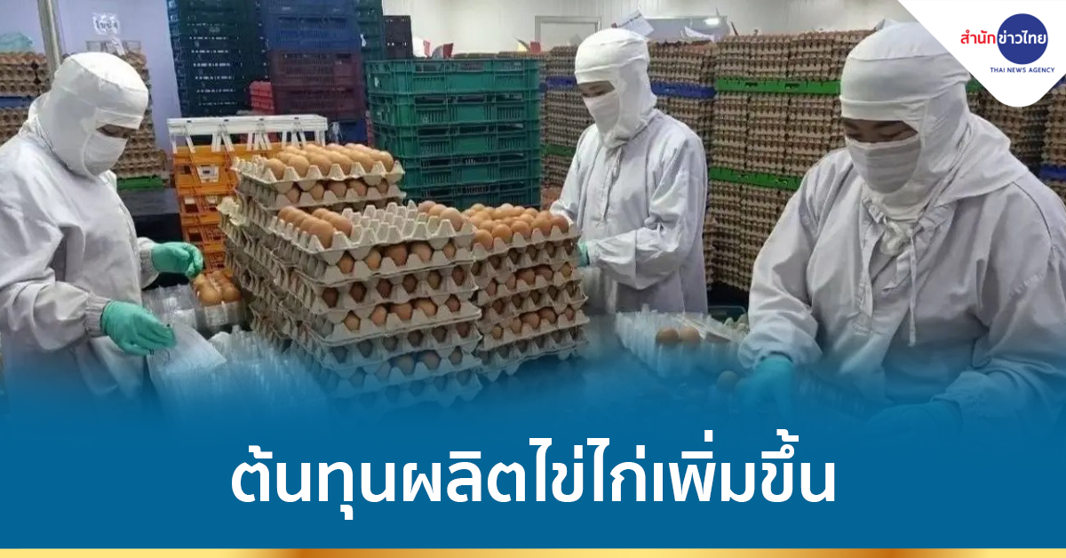 ทั้งนี้ต้นทุนการผลิตเพิ่มขึ้นจากไตรมาส 2/2565 ถึงร้อยละ 7.94 เนื่องจากค่าพันธุ์สัตว์ ราคาอาหารสัตว์ ค่าวัคซีนและยาป้องกันโรค ค่าน้ำ ค่าไฟฟ้า และค่าน้ำมันเชื้อเพลิงปรับสูงขึ้น พร้อมประเมินว่าต้นทุนการผลิตไข่ไก่ไตรมาส 4/2565 เฉลี่ยฟองละ 3.47 บาท ซึ่งมากกว่าราคาไข่คละหน้าฟาร์มที่เกษตรกรจำหน่ายได้ในขณะนั้นซึ่งอยู่ที่ 3.40 บาทต่อฟอง โดยต้นทุนในไตรมาส 4/2565 สูงขึ้นกว่าไตรมาส 3/2565 อีกร้อยละ 2.06