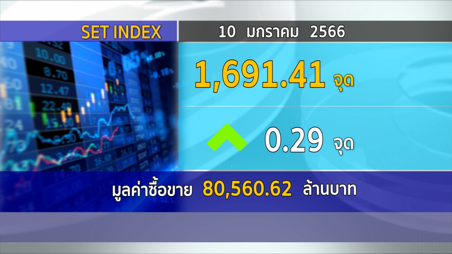 กทม. 10 ม.ค.- SET ปิดวันนี้ที่ 1,691.41 จุด เพิ่มขึ้น 0.29 จุด (+0.02%) มูลค่าการซื้อขาย 80,560.62 ล้านบาท