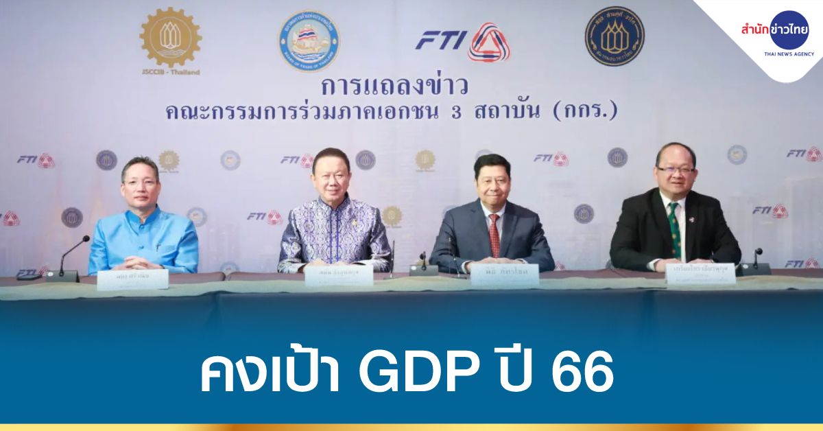 นายสนั่น อังอุบลกุล ประธานกรรมการสภาหอการค้าแห่งประเทศไทย ในฐานะประธานการประชุมคณะกรรมการร่วมภาคเอกชน 3 สถาบัน (กกร.) เปิดเผยว่า เศรษฐกิจไทยปี 2566 ยังมีข้อจำกัดในการฟื้นตัว แม้ว่าแนวโน้มของภาคการท่องเที่ยวจะดีขึ้นอย่างต่อเนื่อง แต่ภาคการส่งออกมีสัญญาณการชะลอตัวตามภาวะเศรษฐกิจโลก ขณะที่ภาวะต้นทุนที่อยู่ในระดับสูงตามราคาพลังงาน ค่าไฟฟ้า และอัตราดอกเบี้ยที่เพิ่มขึ้น เป็นความท้าทายของภาคเอกชน ที่ประชุม กกร. จึงคงกรอบประมาณการเศรษฐกิจไทยในปี 2566 มีแนวโน้มขยายตัวที่ 3.0-3.5% ขณะที่การส่งออกประเมินว่าจะขยายตัวในกรอบ 1.0% ถึง 2.0% ส่วนอัตราเงินเฟ้อทั่วไปคาดว่าจะอยู่ในกรอบ 2.7 ถึง 3.2%