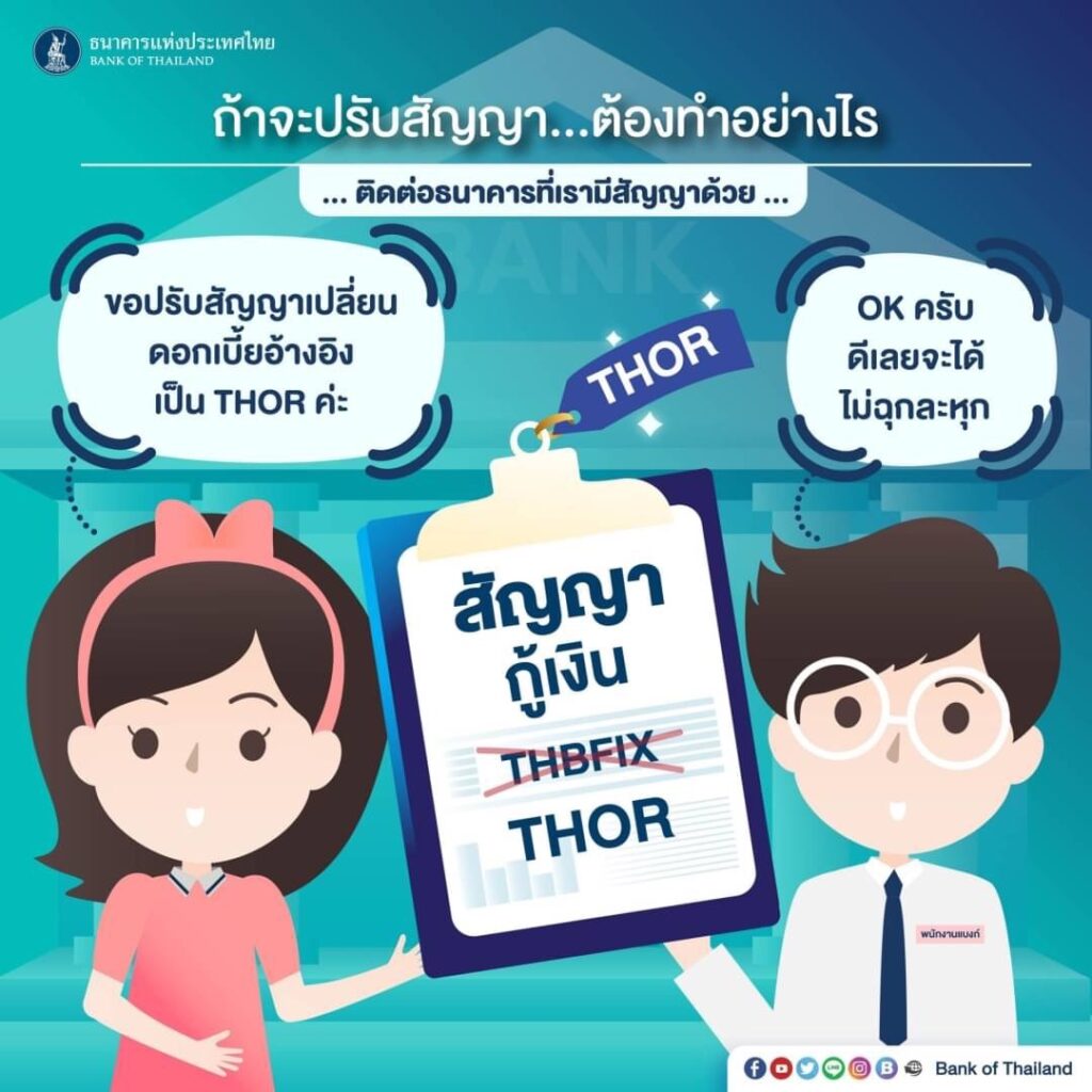 ดังนั้น ธปท. สนับสนุนให้ธุรกิจพิจารณาปรับสัญญาไปอ้างอิง THOR เป็นลำดับแรก แต่หากยังไม่สามารถปรับสัญญาไปอ้างอิง THOR ได้ ขอให้ธุรกิจพิจารณาแก้ไขสัญญาโดยเพิ่มข้อความระบุอัตราดอกเบี้ยที่จะมีผลใช้ทดแทนเป็น Fallback Rate (THBFIX) ไปก่อน และในกรณีที่ธุรกิจได้ตัดสินใจเลือกใช้ Fallback Rate (THBFIX) โดยไม่เปลี่ยนอัตราดอกเบี้ยอ้างอิงไปเป็น THOR ก็ควรเร่งแก้ไขสัญญาให้แล้วเสร็จในลักษณะเดียวกัน โดยการดำเนินการดังกล่าวควรให้แล้วเสร็จภายในไตรมาสแรกของปี 2566 เพื่อหลีกเลี่ยงความเสี่ยงที่การเจรจาเปลี่ยนอัตราดอกเบี้ยอ้างอิงไม่ทันเวลาจนต้องไปใช้อัตราดอกเบี้ยสำรองที่ระบุอยู่เดิมในสัญญา ซึ่งอาจมีคุณลักษณะตลอดจนราคาต่างจากอัตราดอกเบี้ย THBFIX ได้มาก