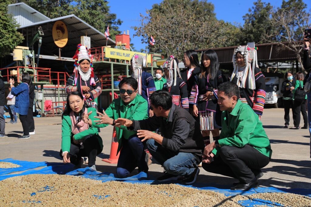 วันนี้ (14 มกราคม 2566) นายพงษ์พันธ์ จงรักษ์ รองผู้จัดการธนาคารเพื่อการเกษตรและสหกรณ์การเกษตร (ธ.ก.ส.) และนายไพศาล หงษ์ทอง ผู้ช่วยผู้จัดการ ธ.ก.ส. เยี่ยมชมงานวิสาหกิจชุมชนผู้ผลิตกาแฟดอยช้าง ซึ่งเป็นกลุ่มที่มีสมาชิกเป็นชนเผ่าอาข่าและลีซู กว่า 1,500 ครัวเรือน โดยรวมกลุ่มทำกิจกรรมที่เกี่ยวข้องกับการผลิตกาแฟสายพันธุ์อาราบิก้า บนพื้นที่กว่า 24,500 ไร่ มีการพัฒนากระบวนการผลิตตั้งแต่ต้นน้ำสู่ปลายน้ำ ทั้งการปลูก การรวบรวม แปรรูป สู่การตลาด และได้รับการรับรองการขึ้นทะเบียนสิ่งบ่งชี้ทางภูมิศาสตร์ของสหภาพยุโรป มีชื่อเสียงเป็นที่ยอมรับทั้งในและต่างประเทศว่าเป็นกาแฟชนิดพิเศษคุณภาพสูง (Specialty Coffee) ซึ่งความตั้งใจในการผลิตกาแฟคุณภาพ และการเอาใจใส่ในมาตรฐาน ช่วยเสริมสร้างรายได้และคุณภาพชีวิตที่ดีแก่สมาชิกมากว่า 20 ปี โดยในช่วงที่ผ่านมาสมาชิกในกลุ่มได้รับผลกระทบจากการแพร่ระบาดของเชื้อไวรัส Covid-19 และวิกฤตเศรษฐกิจทำให้ไม่สามารถส่งออกกาแฟไปยังประเทศคู่ค้า รวมถึงร้านกาแฟดอยช้างไม่สามารถเปิดให้บริการ เนื่องจากมาตรการป้องกันของรัฐบาลและจำนวนนักท่องเที่ยวที่ลดลง ทำให้ขาดรายได้และส่งผลกระทบต่อการชำระหนี้