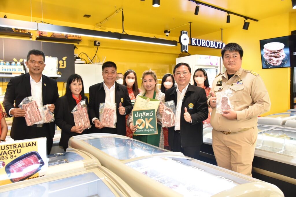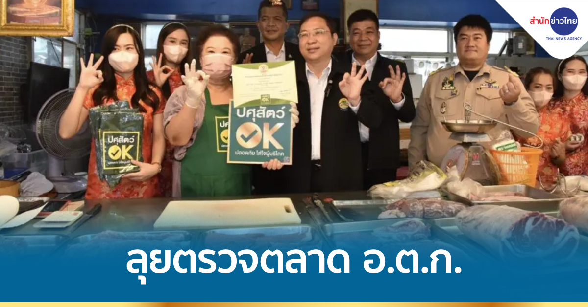 นายสัตวแพทย์สมชวน รัตนมังคลานนท์ อธิบดีกรมปศุสัตว์ พร้อมด้วยผู้บริหารกรมปศุสัตว์ ตรวจเยี่ยมร้านจำหน่ายผลิตภัณฑ์ปศุสัตว์ และมอบป้าย “ปศุสัตว์ OK” แก่ร้านจำหน่ายผลิตภัณฑ์ปศุสัตว์ในตลาดสดองค์การตลาดเพื่อเกษตรกร (อ.ต.ก.) เขตจตุจักร กรุงเทพฯ เพื่อสร้างความมั่นใจแก่ผู้บริโภคที่มาเลือกซื้อสินค้าปศุสัตว์เป็นของไหว้ในเทศกาลตรุษจีน