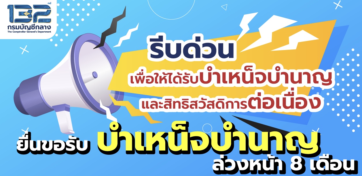 กรมบัญชีกลางจึงขอประชาสัมพันธ์ให้ข้าราชการและลูกจ้างประจำที่จะพ้นจากราชการเพราะเกษียณอายุ ในปีงบประมาณ พ.ศ. 2567 (1 ตุลาคม 2566) ยื่นคำขอรับบำเหน็จบำนาญล่วงหน้าได้ก่อนวันครบเกษียณอายุ โดยสามารถยื่นขอรับบำเหน็จบำนาญต่อส่วนราชการเจ้าสังกัด (ส่วนราชการที่ปฏิบัติงานก่อนเกษียณอายุราชการ) หรือยื่นขอรับบำเหน็จบำนาญด้วยตนเองทางอิเล็กทรอนิกส์ (Pensions’ Electronic Filing) หรือ ระบบ e-Filing ผ่านเว็บไซต์กรมบัญชีกลาง หรือผ่าน Mobile Application “Digital Pension” ได้ตั้งแต่วันที่ 1 กุมภาพันธ์ 2566 เป็นต้นไป