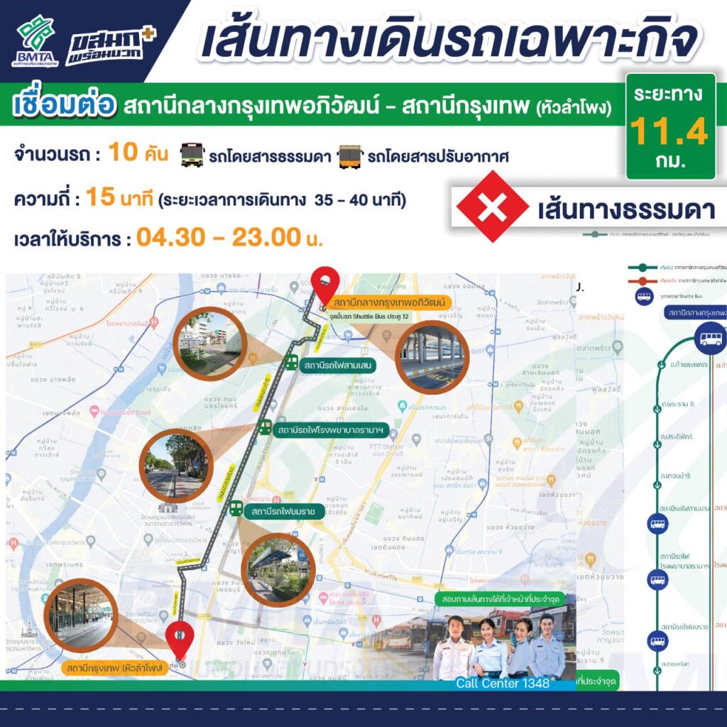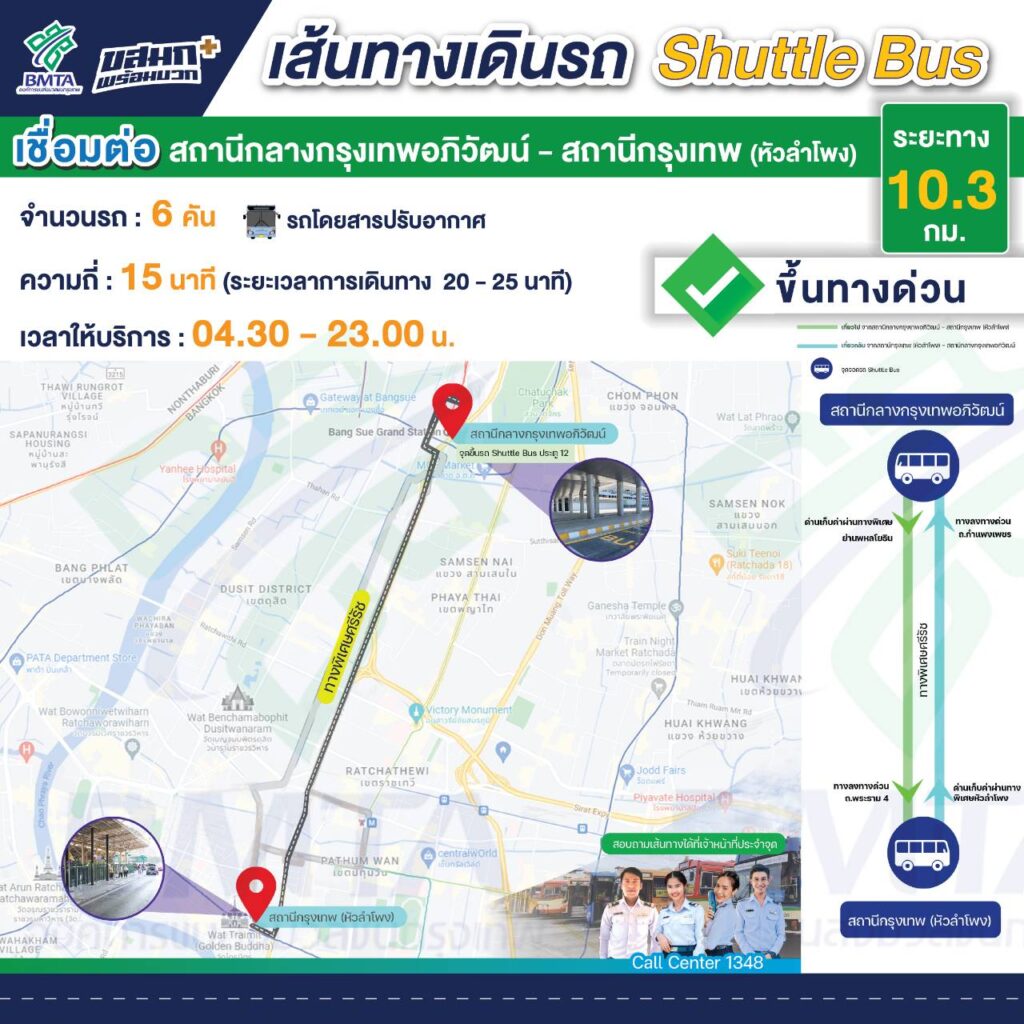 นายศักดิ์สยาม ชิดชอบ รัฐมนตรีว่าการ กระทรวงคมนาคม กล่าวว่าเพื่อเป็นการ อำนวยความสะดวกในการเปิดให้บริการรถไฟทางไกล ซึ่งมีการปรับเปลี่ยนต้นทาง/ปลายทางกลุ่มขบวนรถด่วนพิเศษ ด่วนเร็ว จำนวน 52 ขบวน จากสถานีรถไฟกรุงเทพ (หัวลำโพง) ไปสถานีกลางกรุงเทพอภิวัฒน์ ตั้งแต่วันที่ 19 มกราคม 2566 เป็นต้นไป โดยจัดเดินรถ Shuttle Bus และรถเฉพาะกิจ ให้บริการฟรี 2 เส้นทาง โดยแสดงตั๋วรถไฟต่อพนักงานเก็บค่าโดยสารเมื่อใช้บริการ สามารถขึ้นรถได้ที่ประตู 12 สถานีกลางกรุงเทพอภิวัฒน์ และป้ายรถเมล์สถานีรถไฟกรุงเทพ (หัวลำโพง) ดังนี้