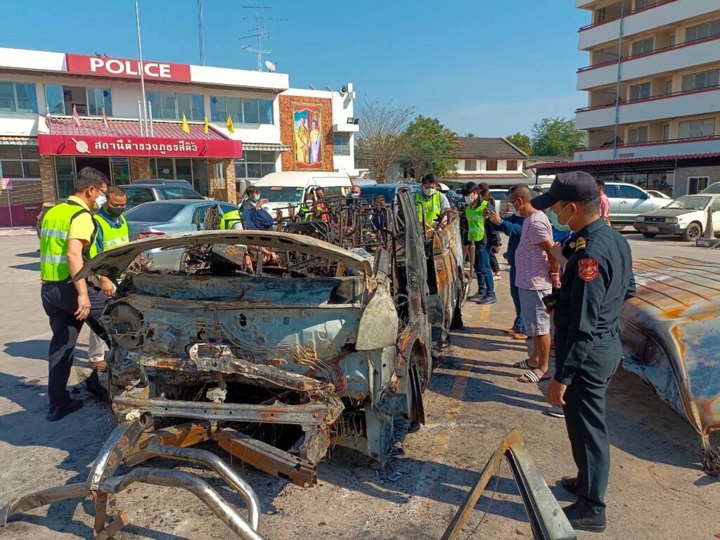 อย่างไรก็ตาม สภาพโดยรวมทั่วไป ยางยังมีสภาพใหม่และดอกยางยังลึกอยู่ ระบบบังคับเลี้ยวอยู่ในสภาพดี ไม่พบความผิดปกติของระบบช่วงล่างอื่นๆ ติดตั้งที่นั่งทั้งหมดจำนวน 13 ที่นั่ง ตามที่ปรากฏในเล่มทะเบียน มีค้อนทุบกระจกติดตั้งครบ มีทางออกฉุกเฉินที่ด้านท้ายของตัวรถ สภาพที่นั่งและอุปกรณ์ตกแต่งภายในถูกไฟไหม้สิ้นเชิง ตัวถังรถถูกตัดออกเพื่อเก็บกู้ศพหลังจากการเกิดอุบัติเหตุ จึงสันนิษฐานเบื้องต้นว่า รถตู้โดยสารคันดังกล่าวได้ขับออกจากจังหวัดอำนาจเจริญ ตั้งแต่เวลา 12.00 น. โดยประมาณ เมื่อมาถึงจุดเกิดเหตุบริเวณจุดกลับรถ “มอจะบก” รถได้เบนออกจากเส้นทางหลักและปีนคร่อมราวเหล็กเกาะกลางถนน (Guard Rail) ปลายจุดกลับรถ