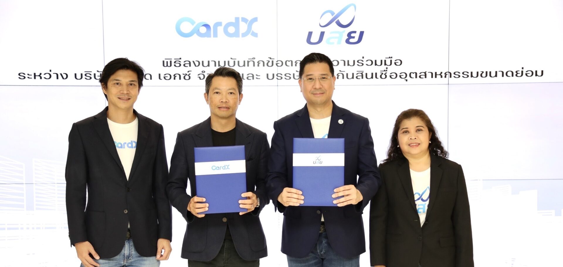 นายสิทธิกร ดิเรกสุนทร กรรมการและผู้จัดการทั่วไป บรรษัทประกันสินเชื่ออุตสาหกรรมขนาดย่อม (บสย.) พร้อมด้วยนายสารัชต์ รัตนาภรณ์ ประธานเจ้าหน้าที่บริหาร บริษัท คาร์ด เอกซ์ จำกัด (CardX) กลุ่มธุรกิจทางการเงินในเครือบริษัทเอสซีบี เอกซ์ จำกัด (มหาชน) SCBx ผู้ให้บริการ แพลตฟอร์มด้านการเงินดิจิทัล เพื่อปล่อยสินเชื่อให้กับผู้ประกอบการรายย่อย ได้ร่วมลงนามบันทึกข้อตกลงความร่วมมือเพื่อร่วมกันสนับสนุนการเข้าถึงแหล่งทุน สินเชื่อ ผ่านกลไกการค้ำประกันสินเชื่อ เติมทุน หนุนค้ำ เสริมแกร่งธุรกิจ เพิ่มศักยภาพทางการเงิน แก่ผู้ประกอบการ SMEs รายย่อย ณ CardX สำนักงานใหญ่ SCB