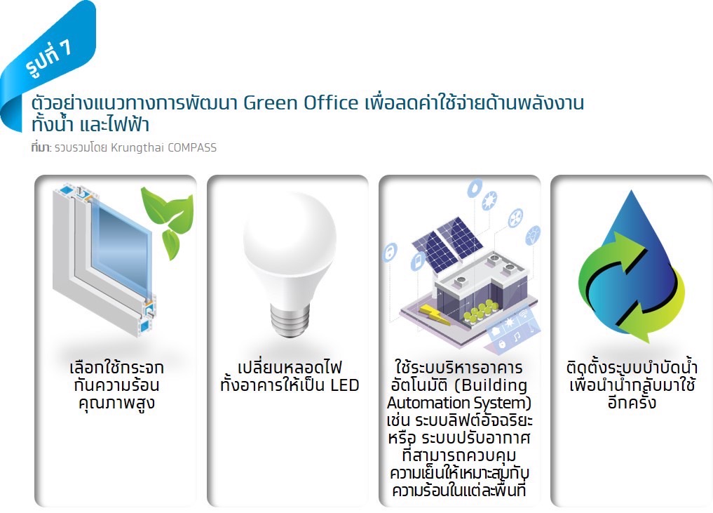 นอกจากนี้ เจ้าของอาคารสำนักงานทั่วไปก็สามารถลงทุนเพื่อยกระดับให้เป็น Green Office ได้เช่นกัน แต่อาจมีค่าใช้จ่ายที่แตกต่างกันออกไปขึ้นอยู่กับอายุ และโครงสร้างของสำนักงานแต่ละแห่ง.-สำนักข่าวไทย