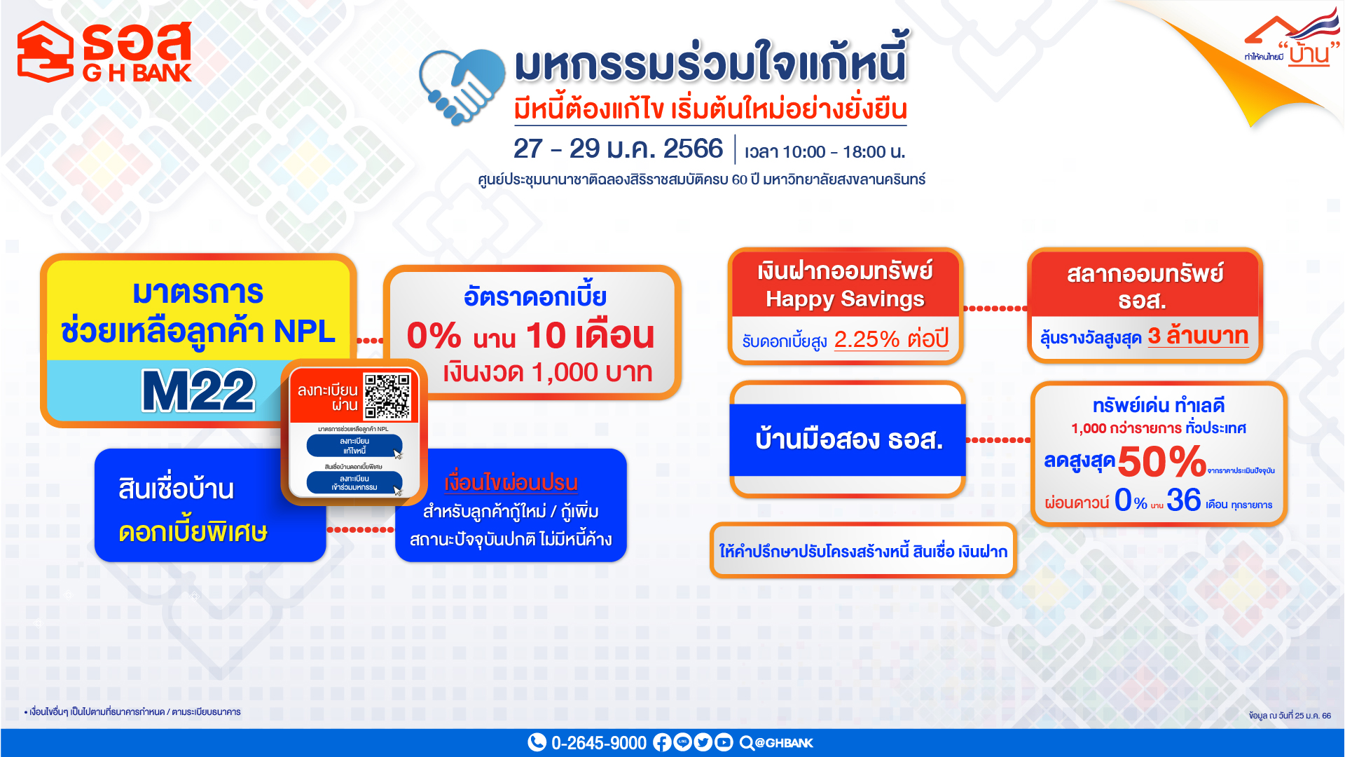 กรุงเทพฯ 26 ม.ค.- ธอส. นำมาตรการแก้หนี้ เติมเงิน เสริมสภาพคล่อง ช่วยชาวใต้ “มหกรรมร่วมใจแก้หนี้”