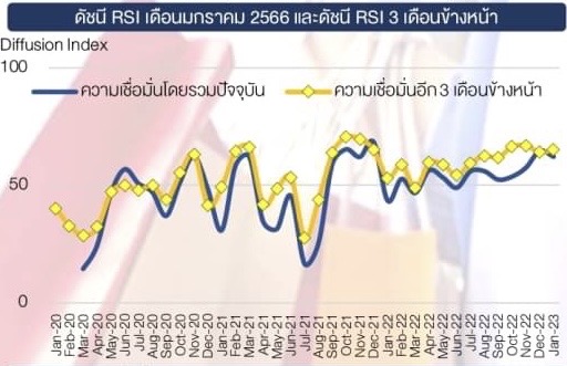กรุงเทพฯ 1 ก.พ. – ธปท. สมาคมผู้ค้าปลีกไทย สำรวจดัชนีเชื่อมั่นค้าปลีก (RSI) เดือน ม.ค.66 ปรับลดลง จากกำลังซื้อยังอ่อนแอ-ต้นทุนธุรกิจเพิ่มต่อเนื่อง ประเมิน “ช้อปดีมีคืน” กระตุ้นยอดขายไม่เกิน 10% ขณะที่ท่องเที่ยวทยอยฟื้นหนุนความเชื่อมั่น 3 เดือนข้างหน้าเพิ่มเล็กน้อย