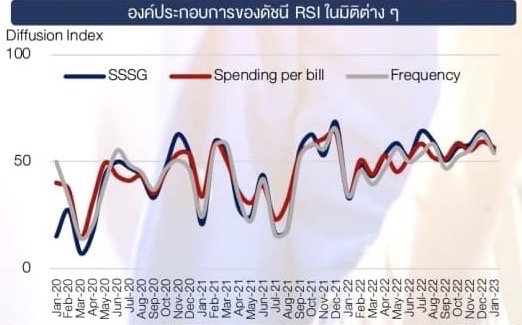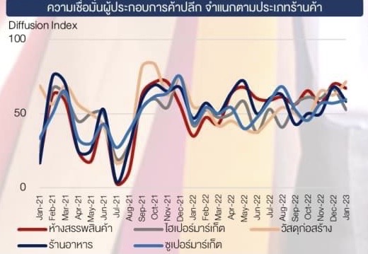 ธนาคารแห่งประเทศไทย (ธปท.) ร่วมกับสมาคมผู้ค้าปลีกไทย เผยผลสำรวจดัชนีความเชื่อมั่นผู้ประกอบการค้าปลีก (Retailer Sentiment Index : RSI) เดือน ม.ค. 2566 โดยพบว่าความเชื่อมั่นผู้ประกอบการค้าปลีกเดือนมกราคม ปรับลดลงจากเดือนก่อน ทั้งความเชื่อมั่นต่อยอดขายสาขาเดิม (SSSG) ยอดใช้จ่ายต่อครั้ง (Spending per bill) และความถี่ของผู้ใช้บริการ (Frequency) แม้ว่าจะมีมาตรการกระตุ้นกำลังซื้อจากภาครัฐ อย่างโครงการช้อปดีมีคืน แต่ก็ช่วยกระตุ้นยอดขายได้ในวงจำกัด ประเมินว่ามาตรการช้อปดีมีคืน จะมีส่วนช่วยยอดขายได้ไม่เกินร้อยละ 10 ขณะที่กำลังซื้อของผู้บริโภคที่ยังอ่อนแอและต้นทุนธุรกิจที่เพิ่มขึ้นต่อเนื่องยังกดดันการฟื้นตัวของธุรกิจค้าปลีก ขณะที่การท่องเที่ยวที่ทยอยฟื้นตัวเป็นปัจจัยสนับสนุนให้ความเชื่อมั่นในอีก 3 เดือนข้างหน้าปรับเพิ่มขึ้นเล็กน้อย